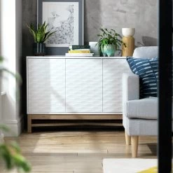 Shipping Included – Habitat Jenson 3 Door Large TV Unit White White Gloss TV Stands And Units