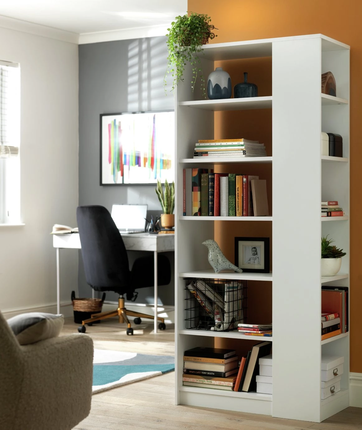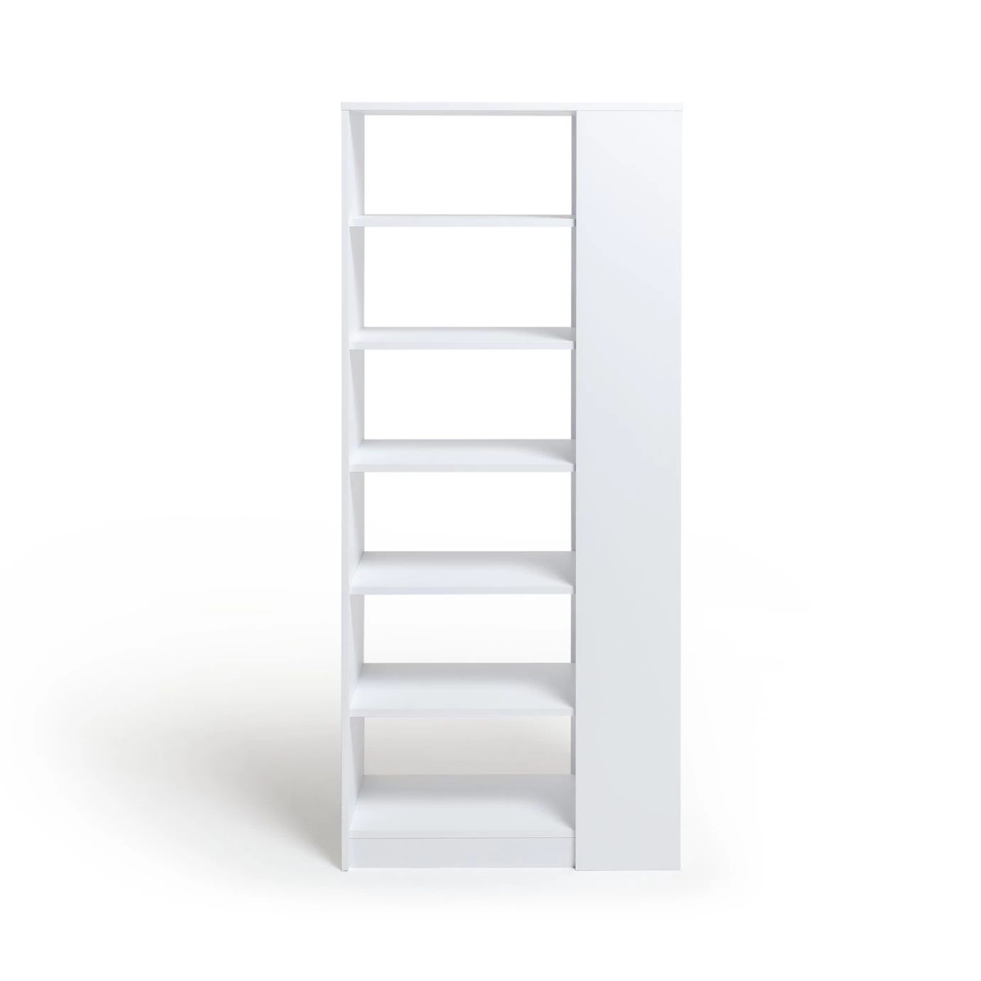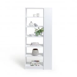 Tall and beautiful, Compton likes the limelight. Book lovers will delight in filling the shelves from top to bottom with thumbed through favourites. Collectors can create an impressive display for valued possessions. Extra thick frames and hidden fittings ensure a sleek, smooth look from any angle. Six tiers of open storage in a white sheen finish make for a dramatic, bold look. We're impressed.