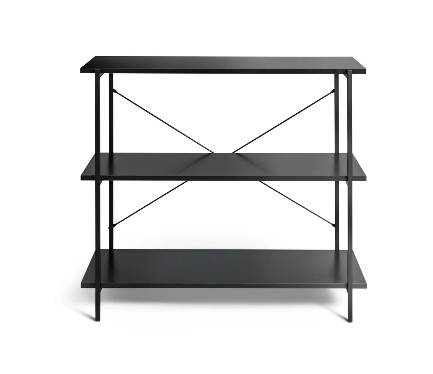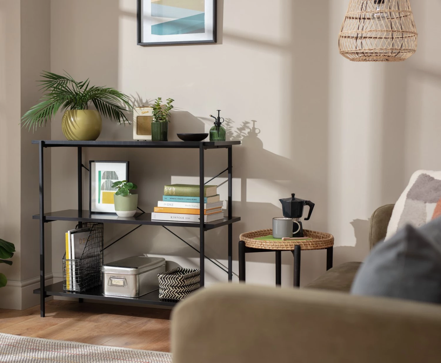How useful is this Huckley shelving unit? Very. Standing free and crafted from stark black steel, its industrial credentials are on display. Yet Huckley loves showing off a softer side. See how pots, plants and artwork look comfortably at home nestled between books or boxes on the 3 tiers. A practical piece with a very long shelf life.