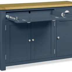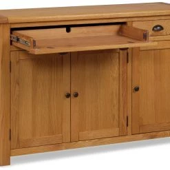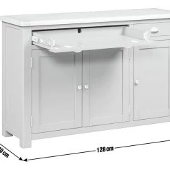 Multi marvelous. That's what we think of multi-functional furniture. And our Kent light grey sideboard/workstation is tops. Traditionally styled with modern lifestyles in mind, it comes complete with a flip down, hinged work surface. All secretly hidden behind mock drawer fronts. Clever eh.