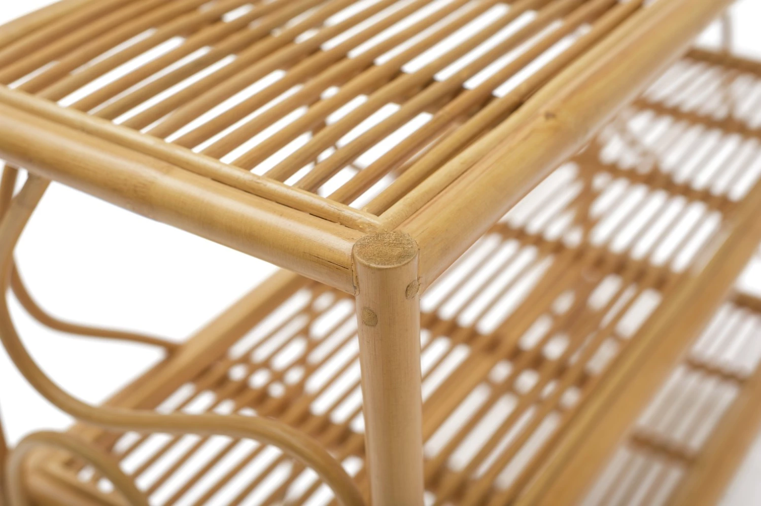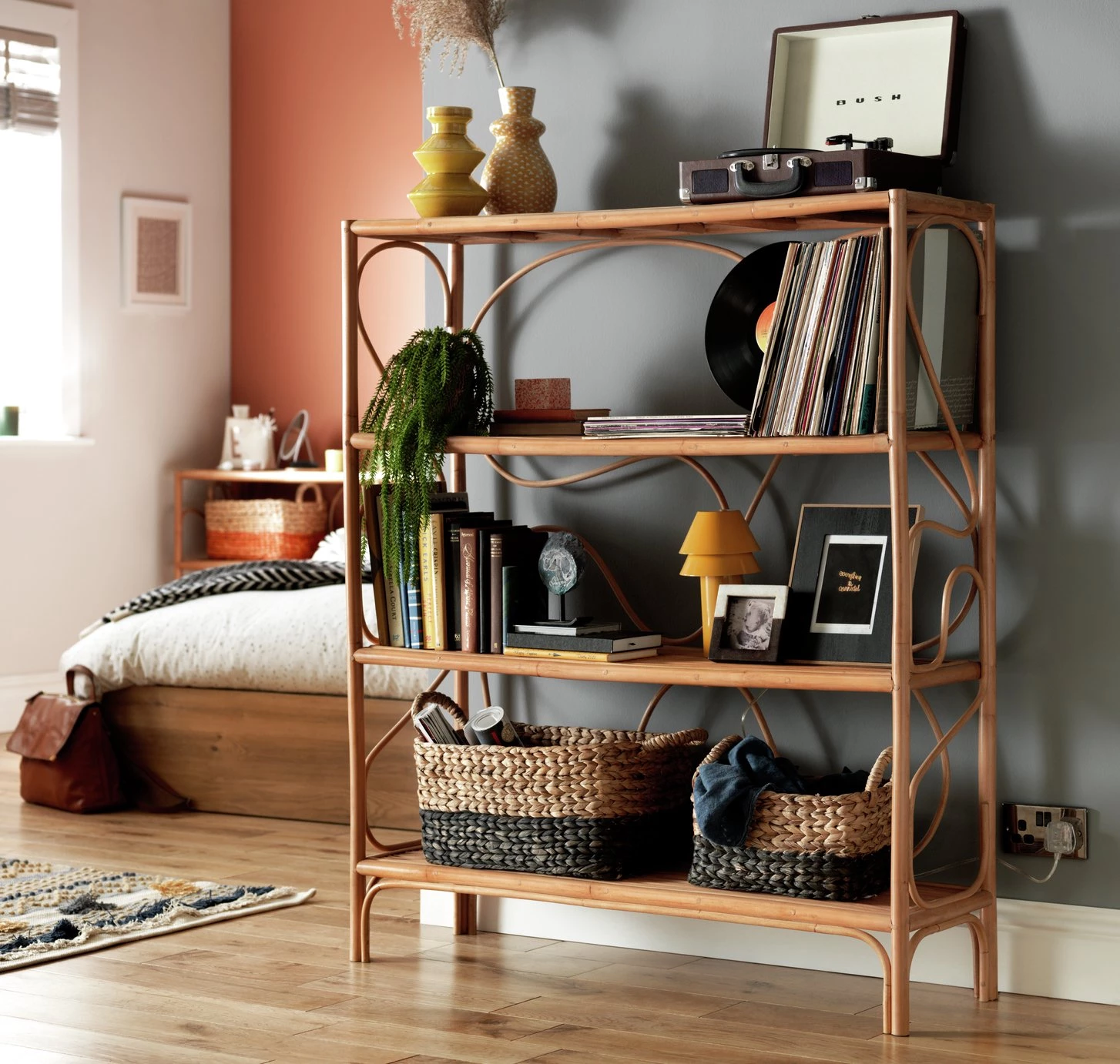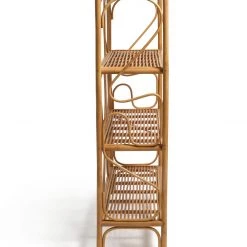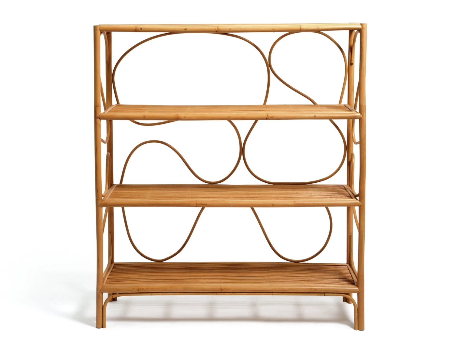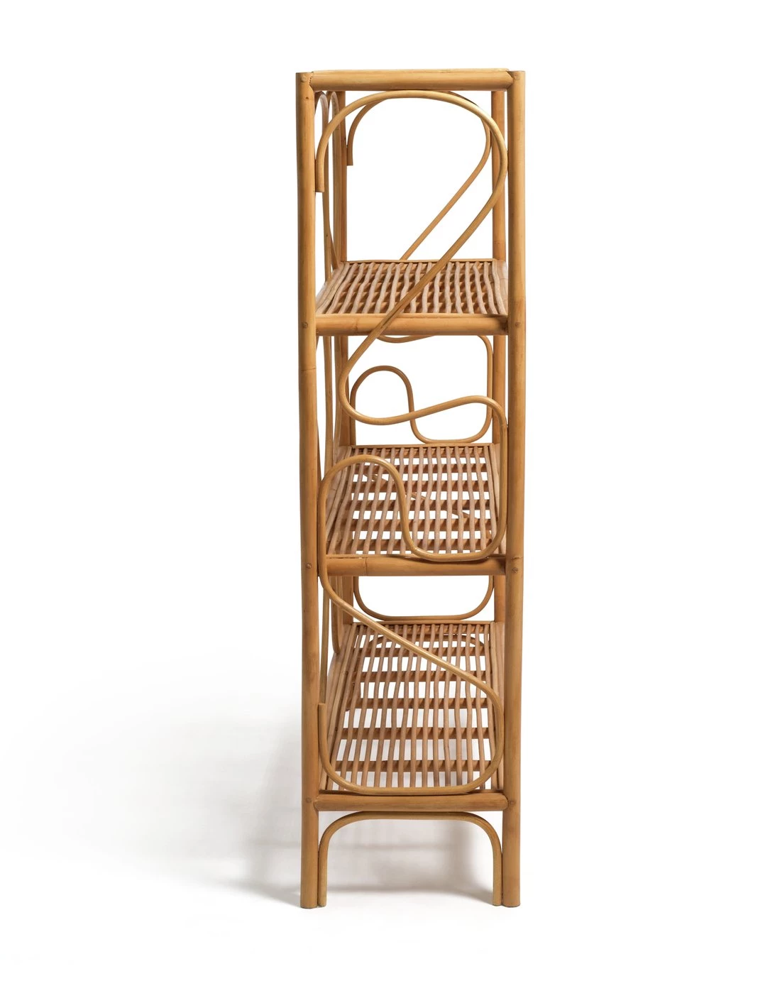 Classic kids' bookshelf. Keep books off the floor but in full view so children can easily find their favourites. Made in natural rattan with a golden blond finish, it's designed with rails so books can be displayed with front cover facing outwards without toppling over. Great in bedrooms, nurseries, and playrooms for ready readers.