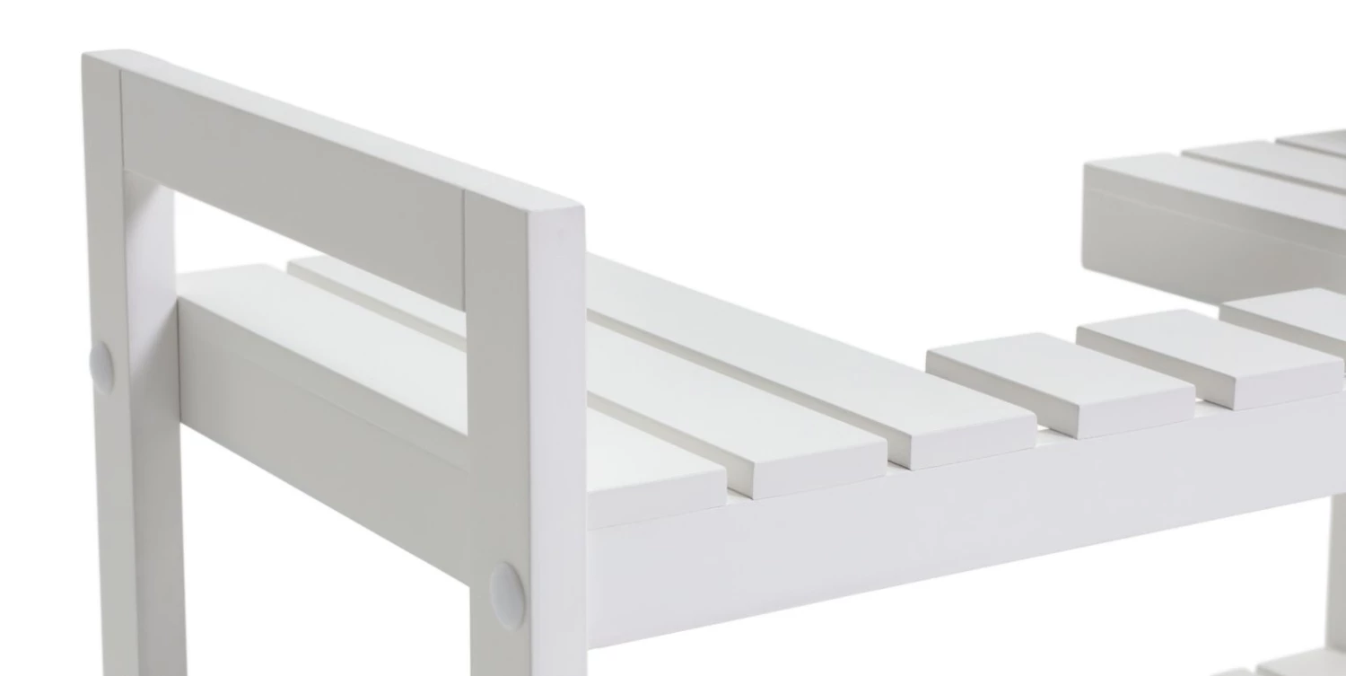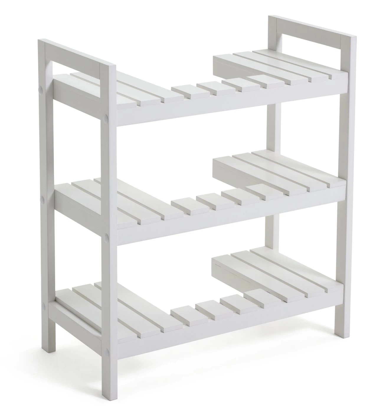 Make the most of your bathroom space with this clever under sink storage unit. Designed to slip right in in it's smart in every way. White painted slatted shelving have that clean, fresh, Nordic feel. Tuck away your lotions and potions on the 3 fitted shelves. Or roll up towels and slot them in. Neat. Space saving and spa like, a winning bathroom combo.