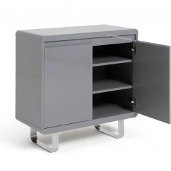 A contemporary cool collection. Habitat Sleigh has a high-gloss grey finish, for a lounge that looks smart and fresh. This effortlessly stylish sideboard is raised from the ground on stand-out, polished sleigh legs, so it is sure to modernise your home. Smoothly does it, the Sleigh boasts rounded edges and, of course, the sleekness and reflective sheen of the high-gloss.