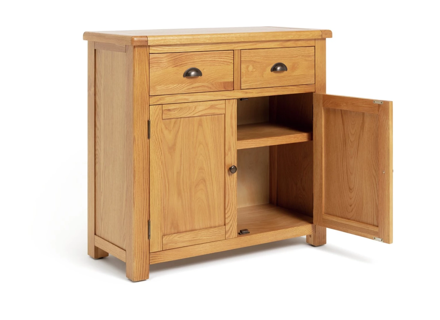 Inspired by country living. The Habitat Kent collection comes fully assembled, so you can put your feet up as soon as it arrives. Its chunky look with rounded edges make this a sturdy sideboard, ideal for a busy household. The surface shows off the natural grains and knots of the wood and the oak finish is warm and inviting. Perfect for cosying up a lounge.