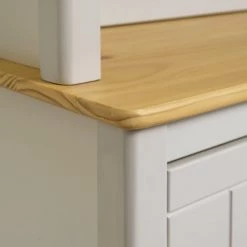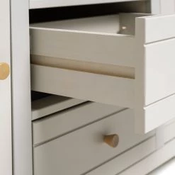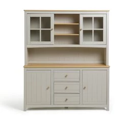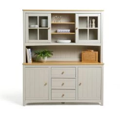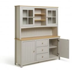 The open shelving is ideal for stacking books or showcasing some of your favourite ornaments. Finished with classic wooden rounded handles, the soft matte light grey lustre and rounded edges give this collection a warm, homely feel.