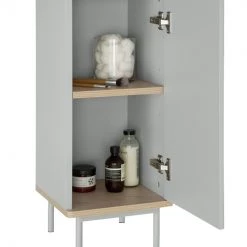 As fresh as a daisy. The Habitat Freja collection will give your bathroom the freshest of makeovers. With a smart matt finish, this 1-door cabinet will add a splash of grey to your space. The perfect place for your cosmetics and cleaning products, it will keep everything you need neatly together, so you don't have to clutter up your surfaces. Freja's curved edges soften the design and create a sense of calm. Its soft-close doors also help to create a tranquil bathroom, as well as protecting your unit. A little powder room pizazz.