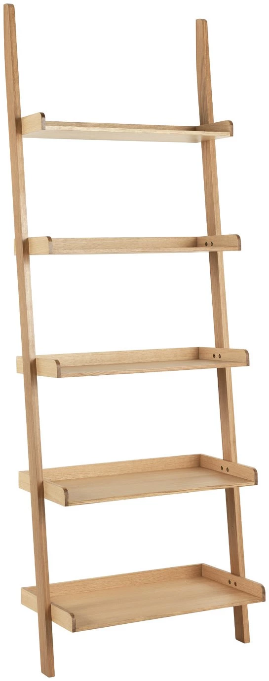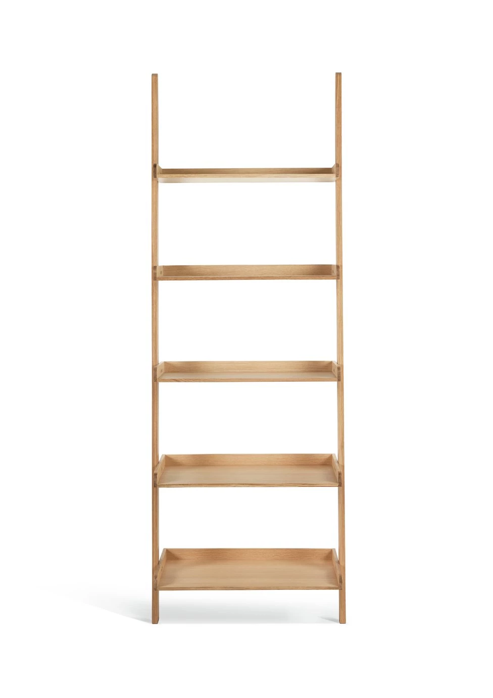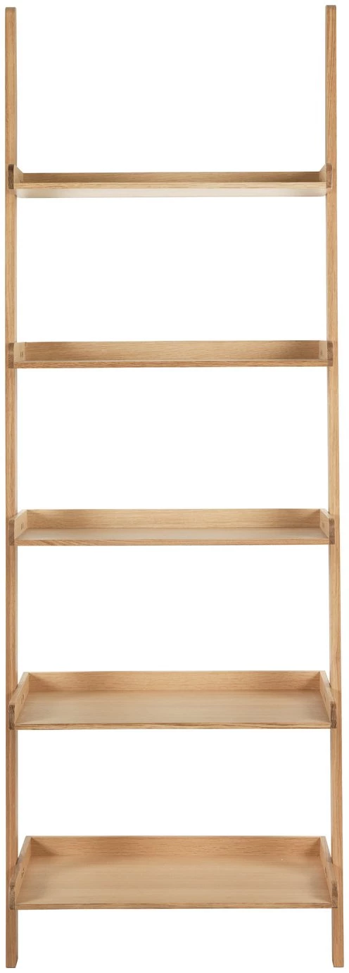 The versatile Habitat Jessie oak wide leaning shelving unit provides valuable shelf space for anything from books and ornaments to toys and paperwork. Also available as a narrow bookcase, Jessie has clean, crisp lines in oak veneer with solid oak uprights and a durable, lacquered finish, and attaches to the wall for safety.