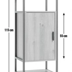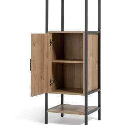 Bring a splash of industrial style to your bathroom with our single door freestanding cabinet. Part of the Loft Living collection, it's crafted from powder coated steel and warm oak-effect wood. Natural with a dramatic edge. Open up the cupboard to reveal space for lotions, creams and hair products. The central shelf can be adjusted to fill taller bits and bobs.