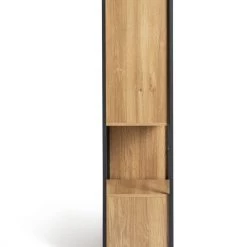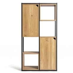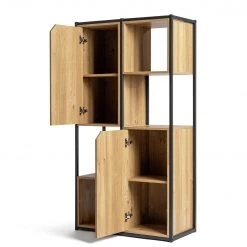 Distinctively industrial. Nail that loft apartment look with this ultra-modern storage and display unit. The Habitat Loft Living collection is fashioned from powder coated steel and warm oak-effect wood. This versatile unit would be at home in the lounge, office, bedroom wherever you need a little extra storage space. It features clean, open lines and a minimalist box-shape. The mixture of open and closed compartments offers a bit of visual variety. The corner cut-out handles add intrigue to this industrial beauty. Cool urban style.