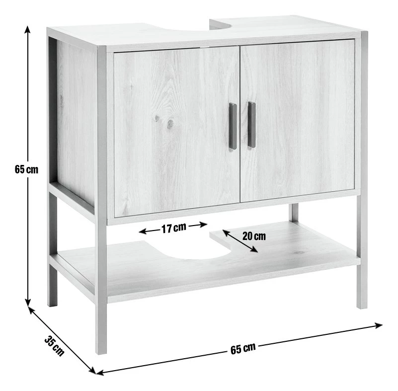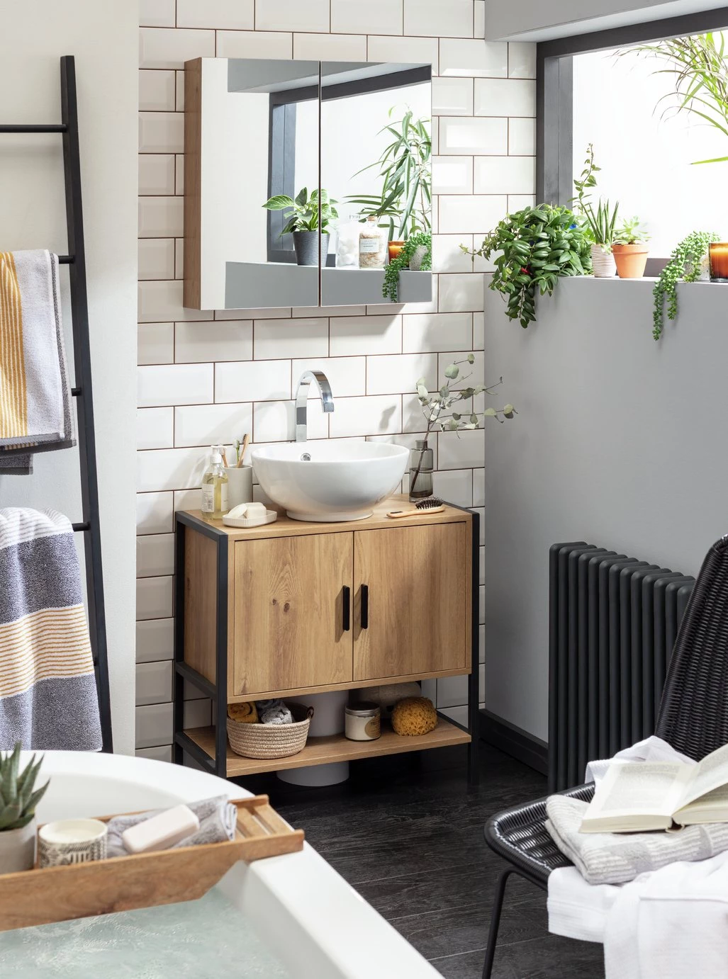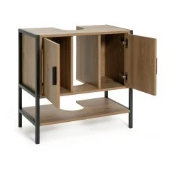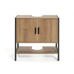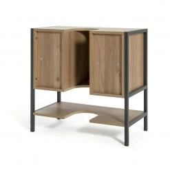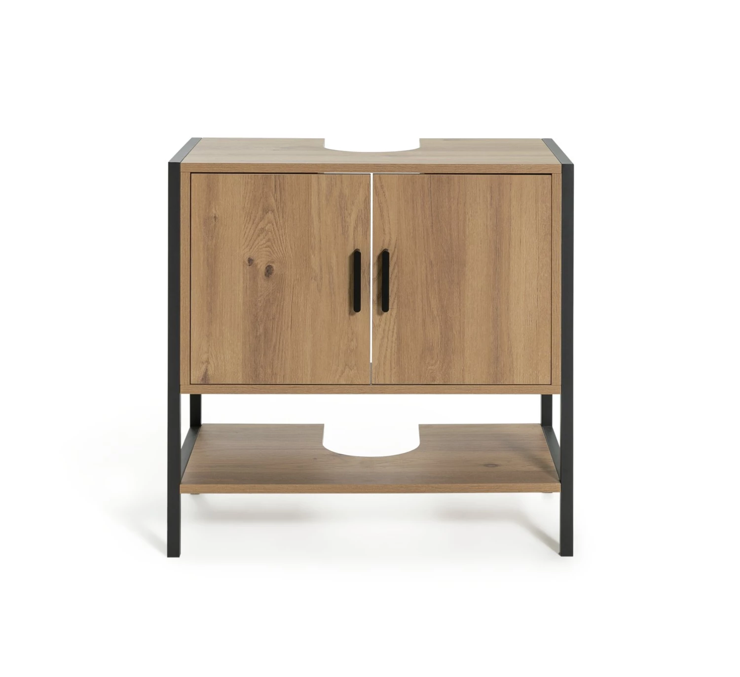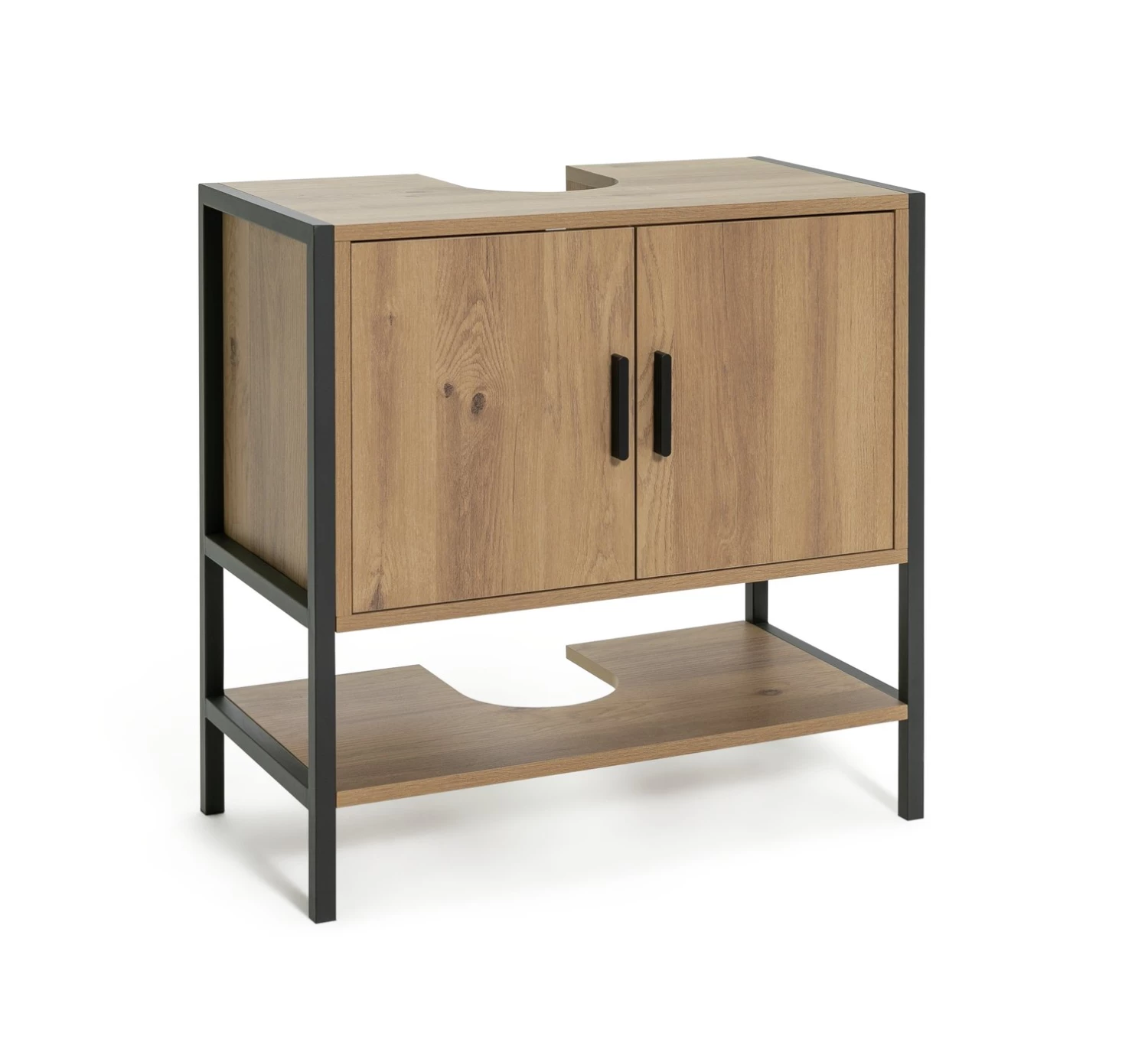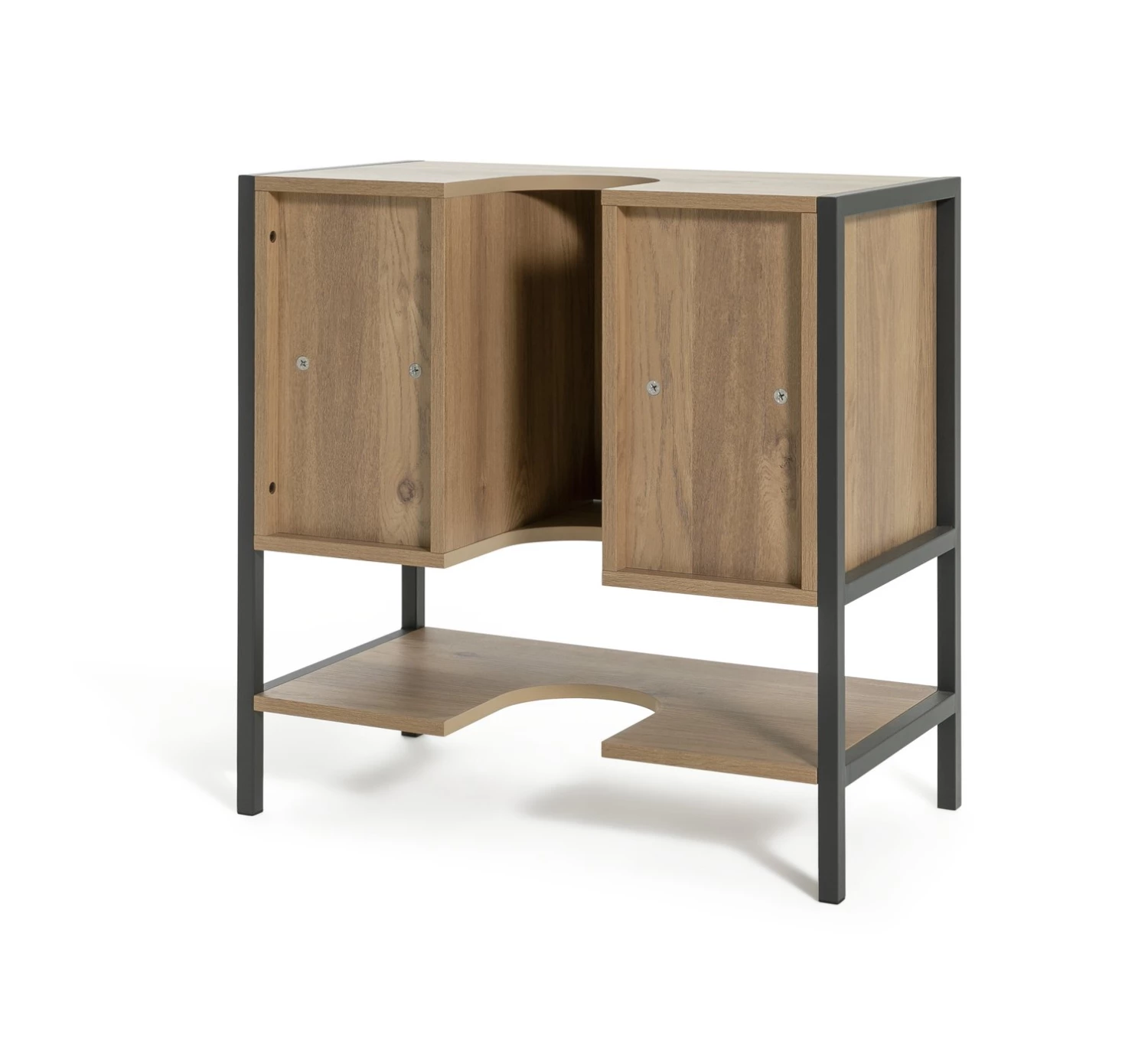 Smart storage. Bring a splash of industrial style to your bathroom with our under-sink freestanding cabinet. Part of the Loft Living collection, it's crafted from powder coated steel and warm oak-effect wood. Natural with a dramatic edge. Keep lotions, creams, toilet roll or cleaning products tidily tucked away in its 2 interior cupboards. Pop towels on the open ledge below. Neat, right?