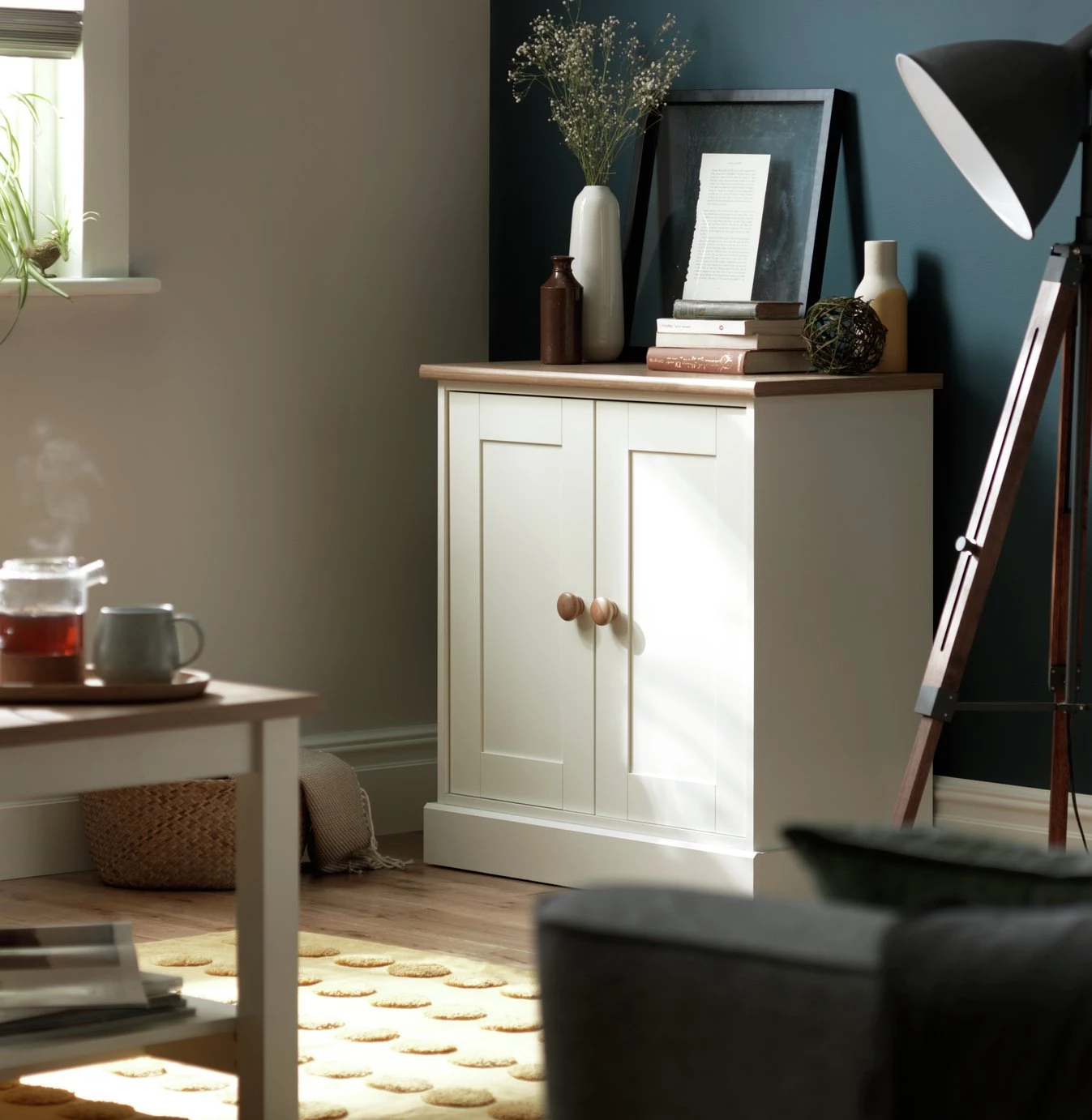 Fancy a little bit of French farmhouse at home? Our multi-use sideboard is ideal for clutter-free living and is designed as a multi-use piece for every room in the house – even the hall. With a thick profiled wooden surface and soft white paint finish, it's a real good looker. Double doors with button handles open to interior shelves that provide plenty of storage potential. We're smitten.