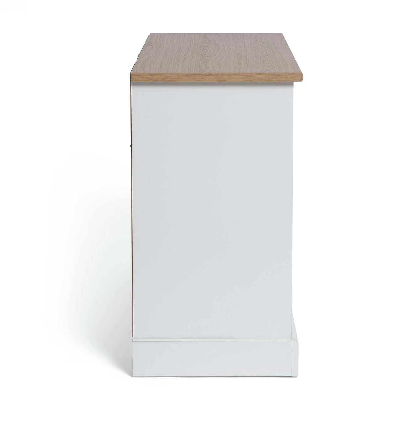 - Made from particleboard and foil with a wood effect finish.
