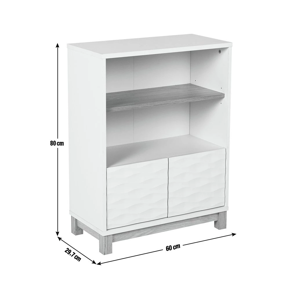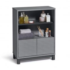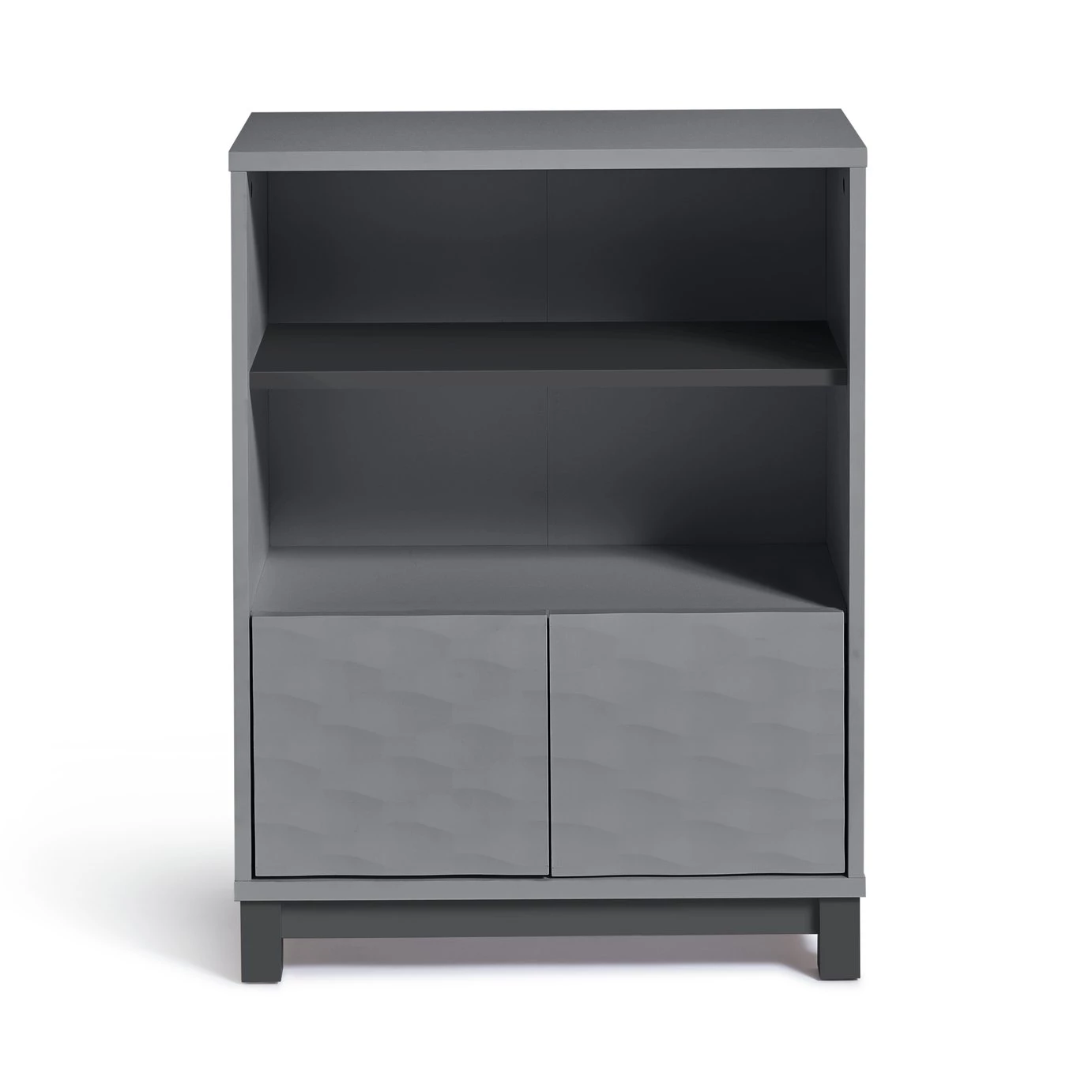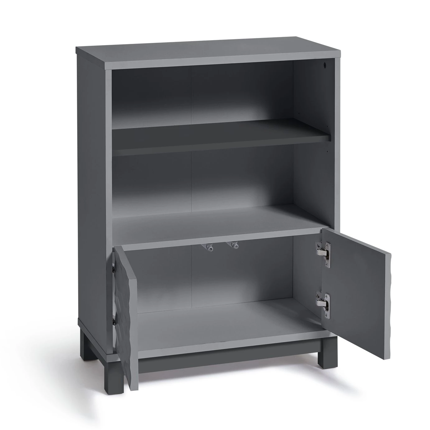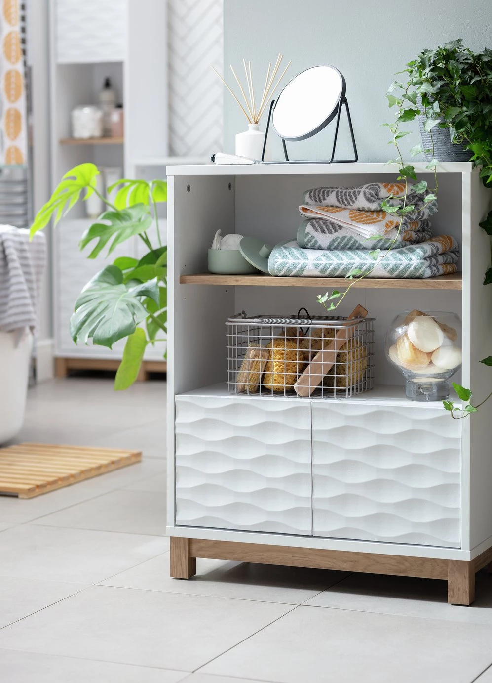 Designer waves for your bathroom. With its ripple effect texture, our Zander freestanding cabinet makes quite the feature. The adjustable top shelf gives you space for folded towels, bottles and other bathroom accessories. And there's more room hidden behind the 2 smooth push-to-open doors. Bathroom storage with a contemporary twist.