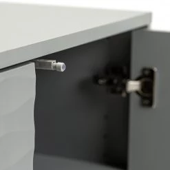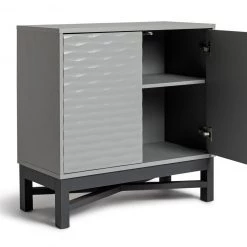 Go for a calming, contemporary look with this textured 2-door sideboard from Habitat. With a wave grey finish and contrasting oak-effect legs, it makes a quirky, stand-out piece. It has an adjustable shelf inside, so you can store DVDs and games out of sight – great if you want to create a clean and modern decor. Each cupboard features push-to-open doors for a flush, handle-less look. Use it as a TV stand or place a green plant on top to add a fresh flash of colour.