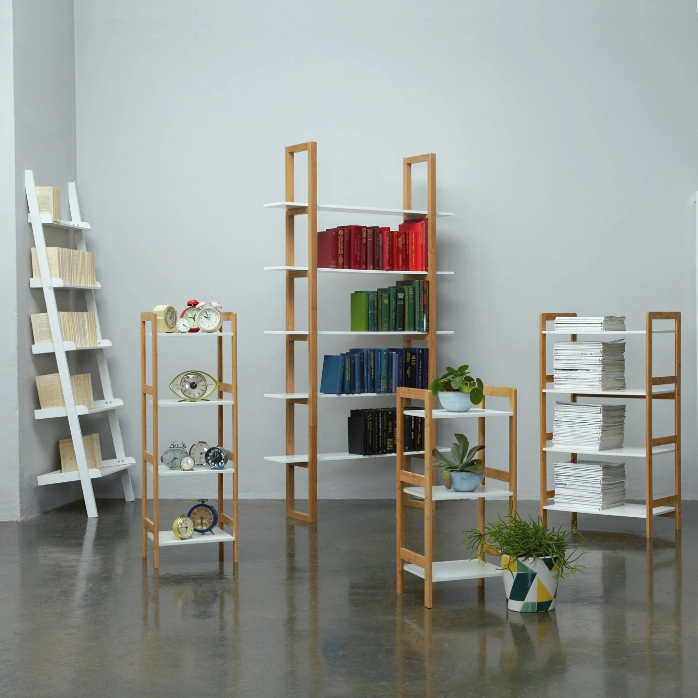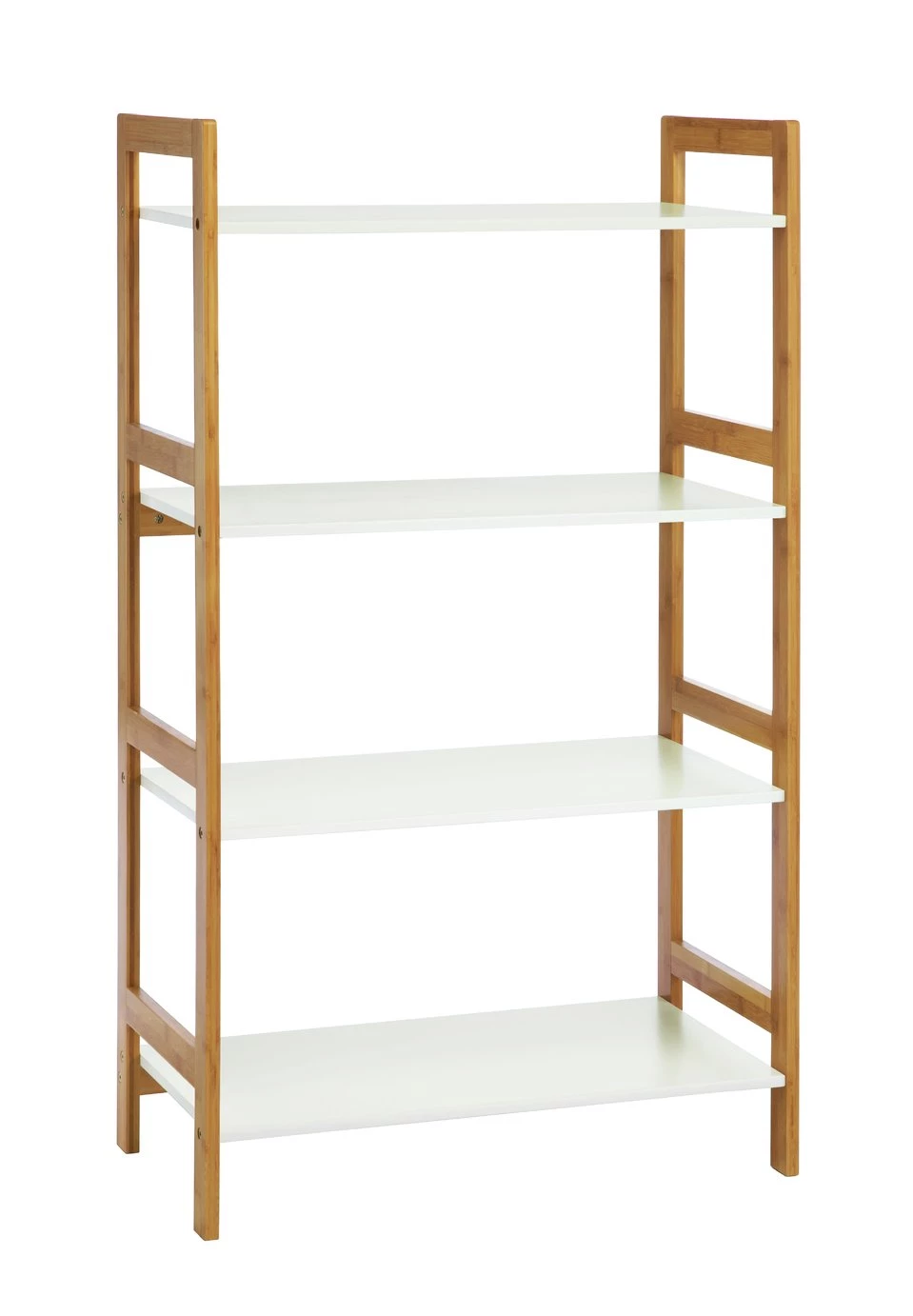 The Drew bamboo and white lacquer wide 4-shelf bookcase uses the warm, naturally sustainable bamboo material in a minimalist design that works in a variety of homes. Part of the Drew furniture range, the bookcase provides practical storage in the sitting room, home office or playroom.