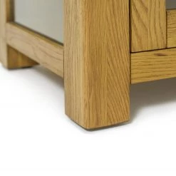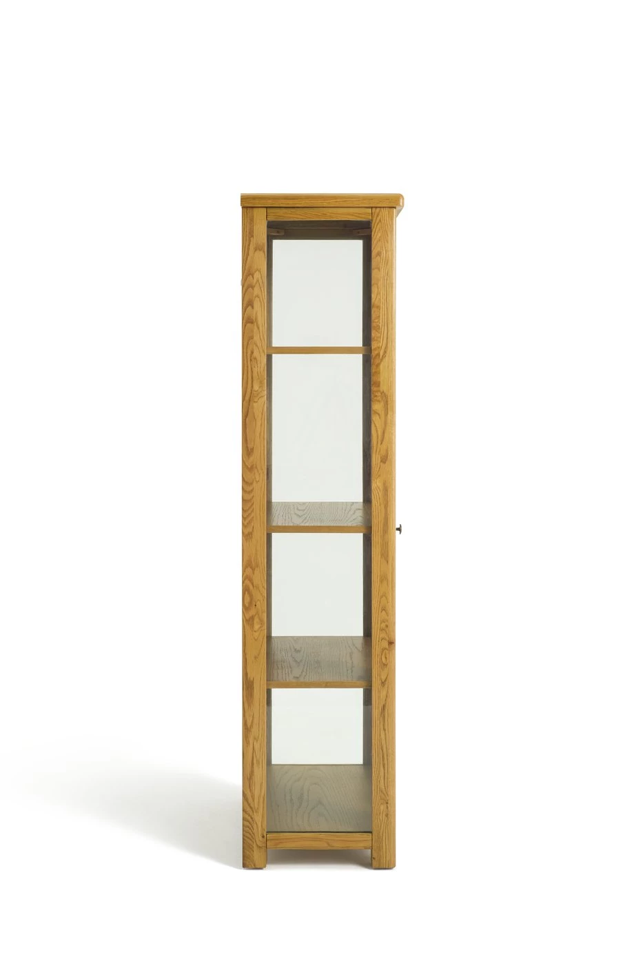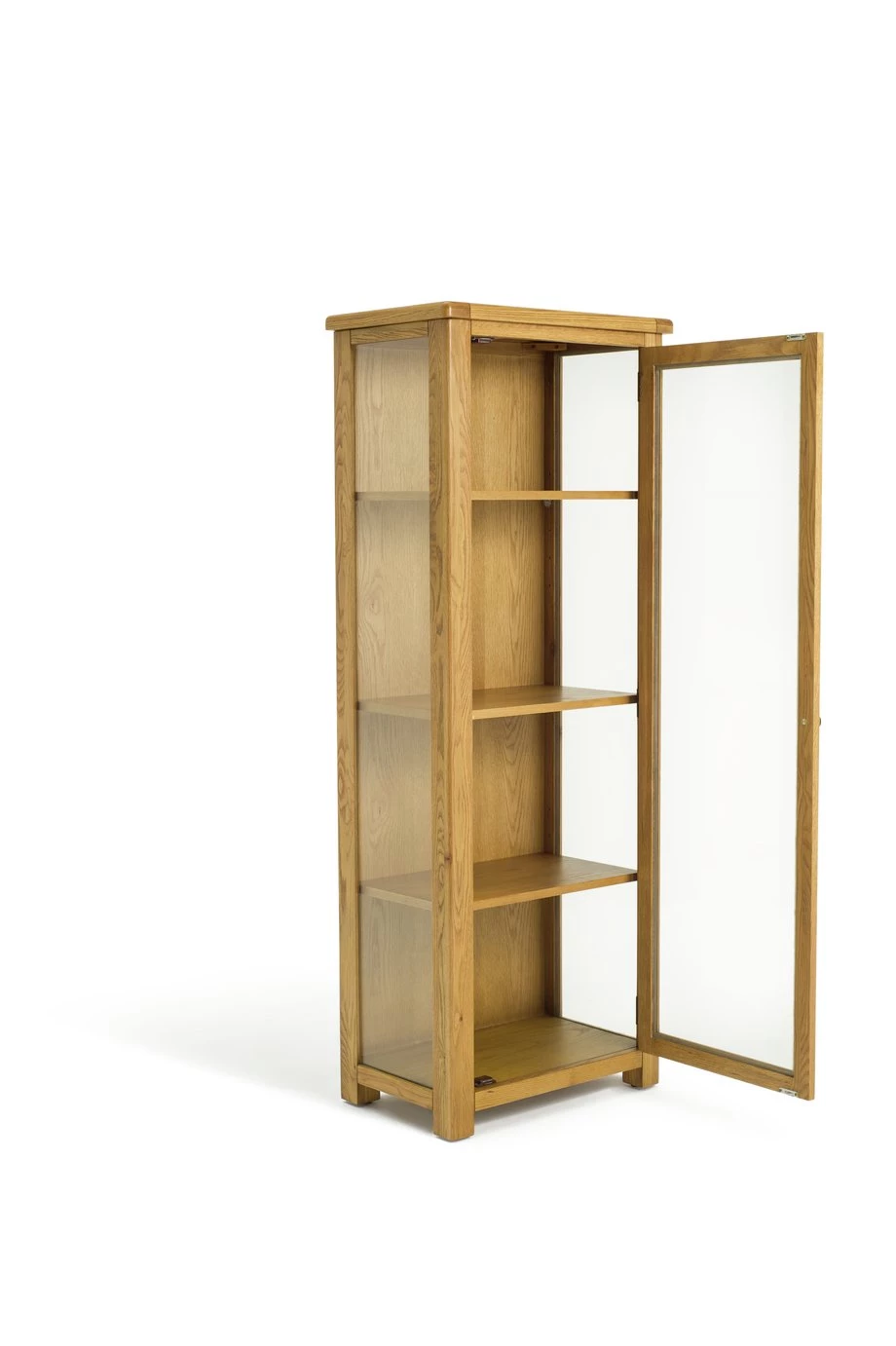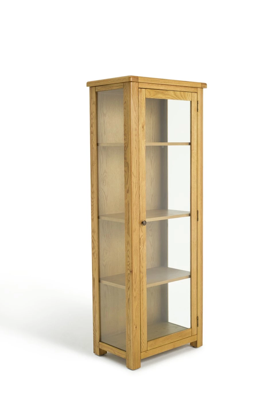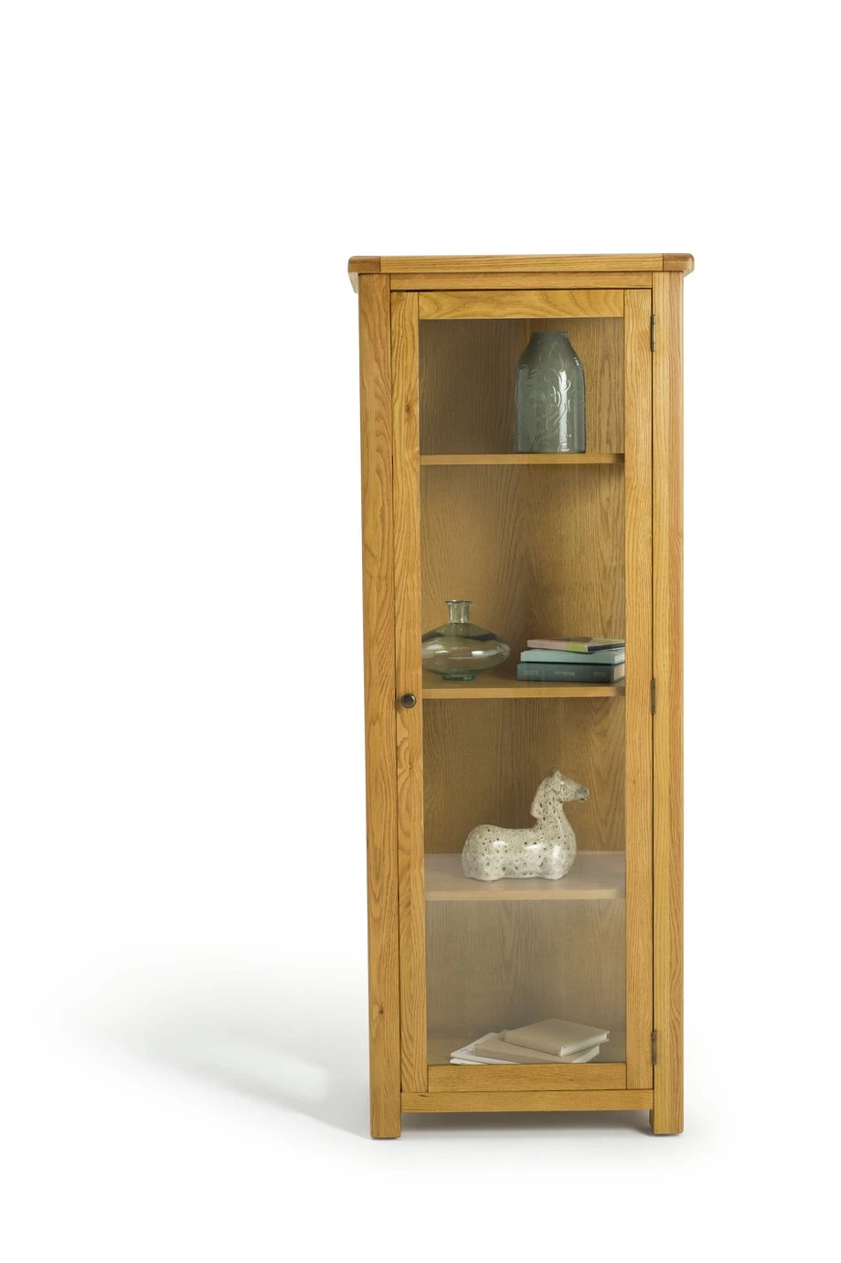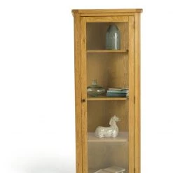 Get ready to be a real show off! This stunning and sturdy, natural looking wood cabinet arrives fully assembled. Great to display your favourite treasures. The warm and inviting oak finish features the natural grains and knots of the wood. A beautiful piece for the lounge or hallway.
