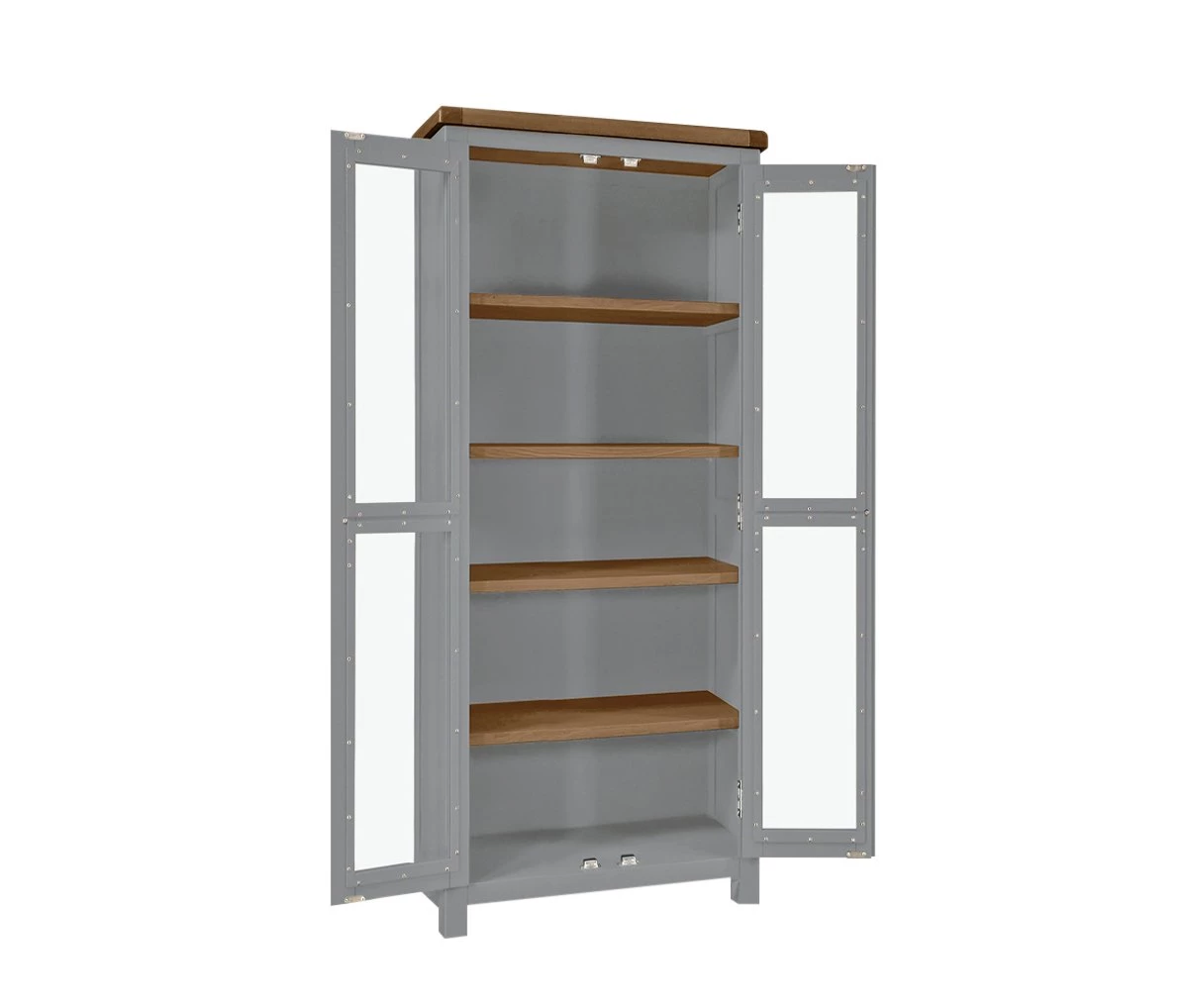 Cosy does it. The Kent range is inspired by country style and adds a warm stylish touch that fits it with any decor you have, from Scandi to country cottage. Made from solid oak and glass and painted a stylish light grey, it's look is sturdy and classic and metal button handles complete the look. This is one display you'll want to make.