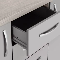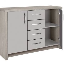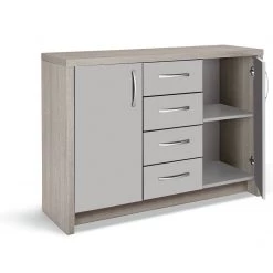 Fill that empty space with this characterful sideboard. Designed to last, this unit from the Habitat Venice collection has a solid, chunky design. It's finished in a striking and trendy two-tone grey. It lives to serve, ready to hold your book collection inside and a few fave photos and ornaments on top. There's a mix of cupboard and drawer space – just the ticket for hiding away files and paperwork. Smoothly does it – the drawers of the Venice feature easy-glide metal runners. It's finished with contemporary bow handles. Practical and pretty.