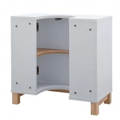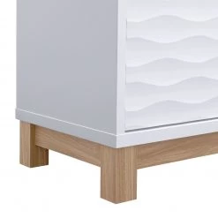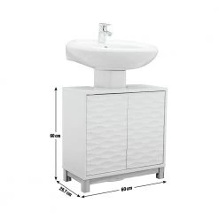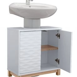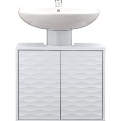 Designer waves for your bathroom. With its ripple-effect texture, this is one good looking under sink unit. It'll add a bright dash of design to your space while hiding clutter. Wrapping around your pedestal sink, Zander has a push-to-open 2-door cabinet. Inside, the adjustable shelf means you can store bottles and cosmetics of varying sizes. How handy.