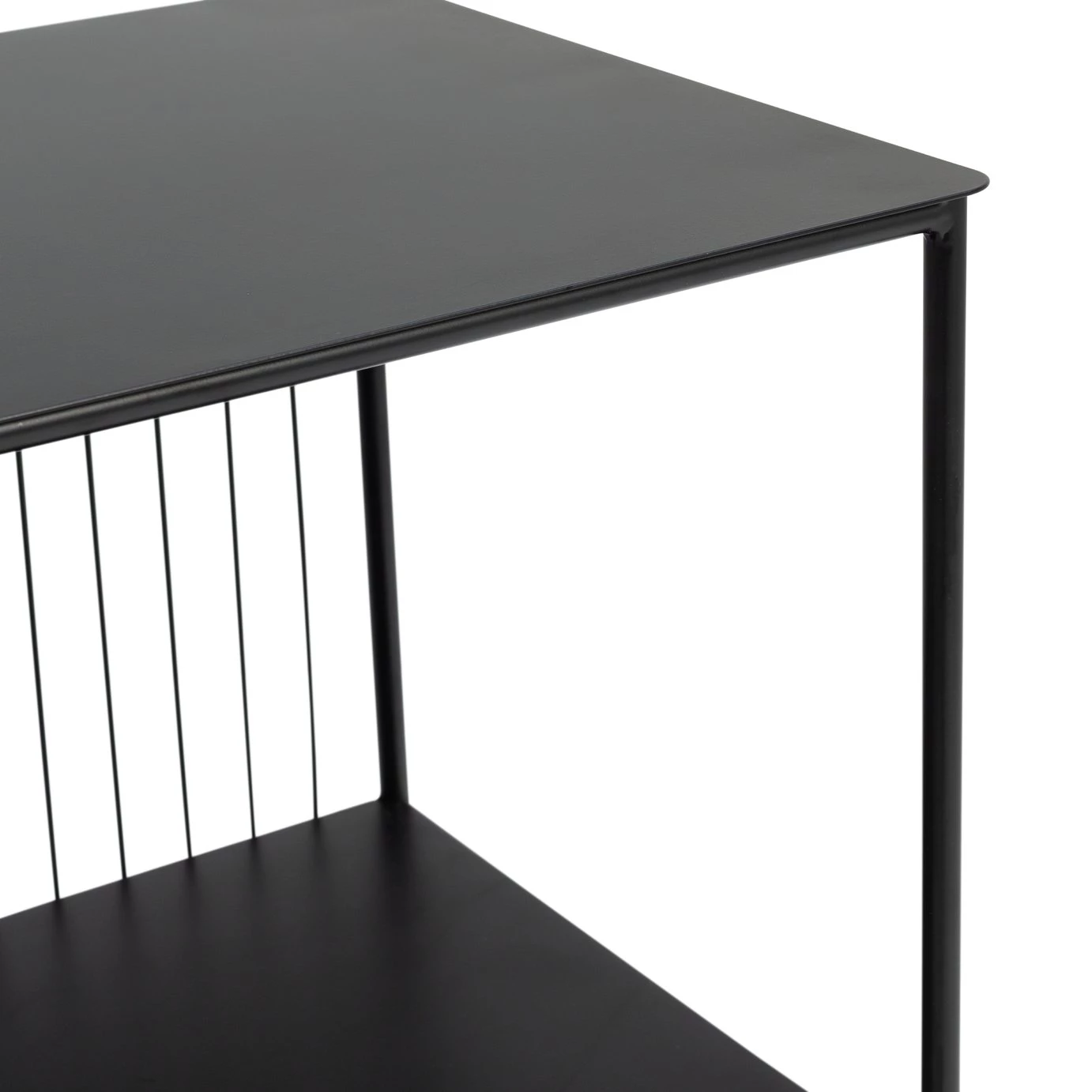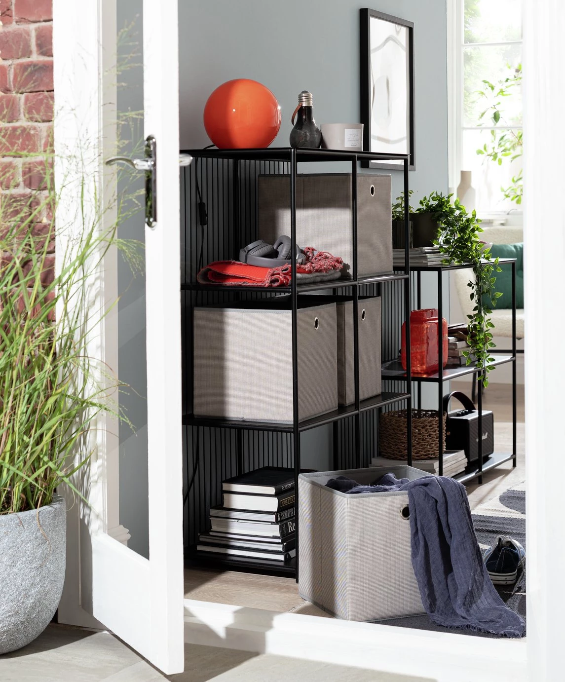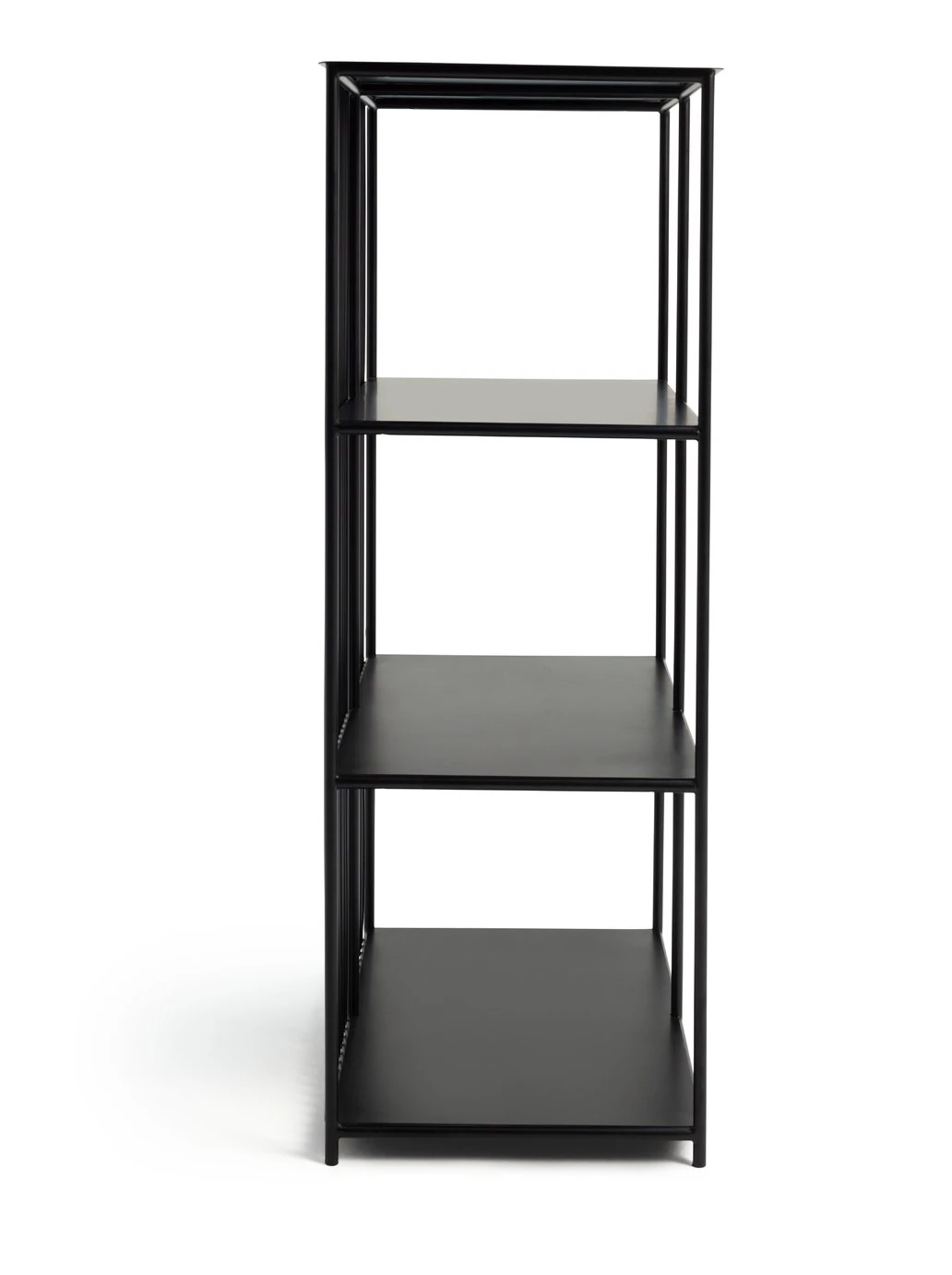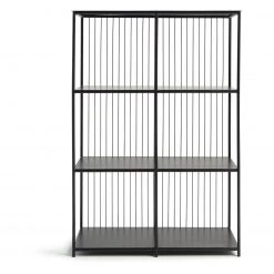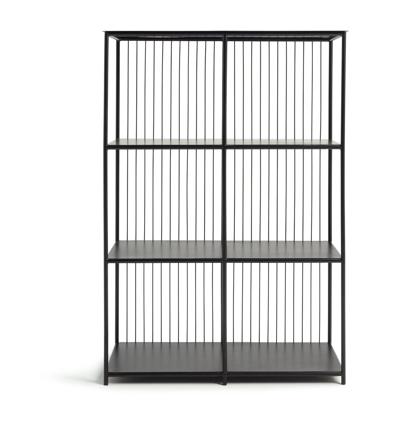 Urban, industrial and bang on-trend. Our modern black shelving unit is a cool way to organise your space. Features 6 shelves in powder-coated iron, and a slim wired backpiece that makes a bold statement. Arrives fully assembled so fuss free. Fill it with books, photos or some trailing fresh greenery. Loft living style? You've nailed it.