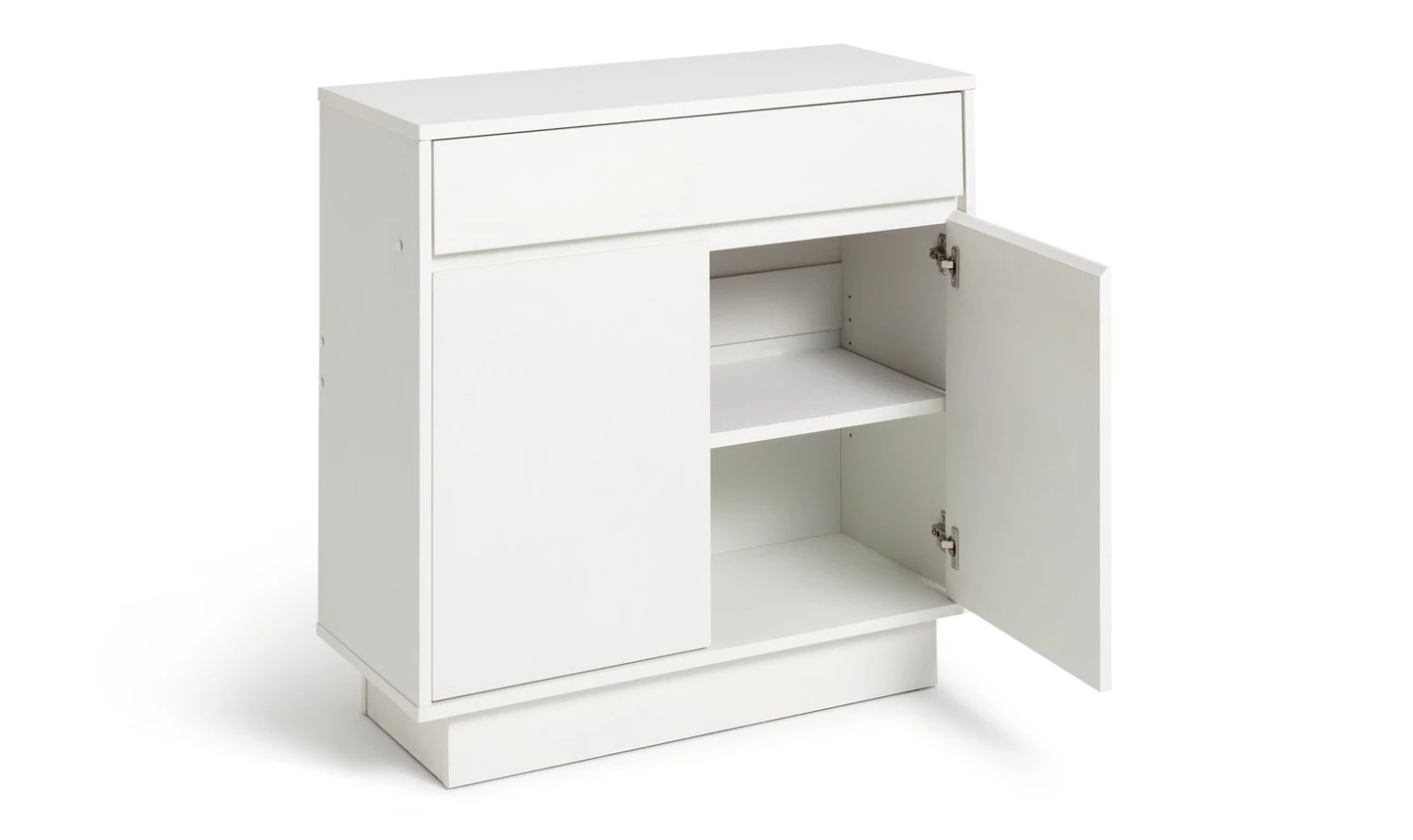 Compact, clever, Cubes. The Habitat Cubes collection is great for smaller spaces. This sideboard can solve your storage woes. Pop it in the kitchen to give a home to everything from bottles to a blender. It's perfect for the lounge too, hiding away paperwork and stationery. Behind the 2 doors is an adjustable shelf, with a drawer above. Available to take home today, you could have a de-cluttered living space by tea time.