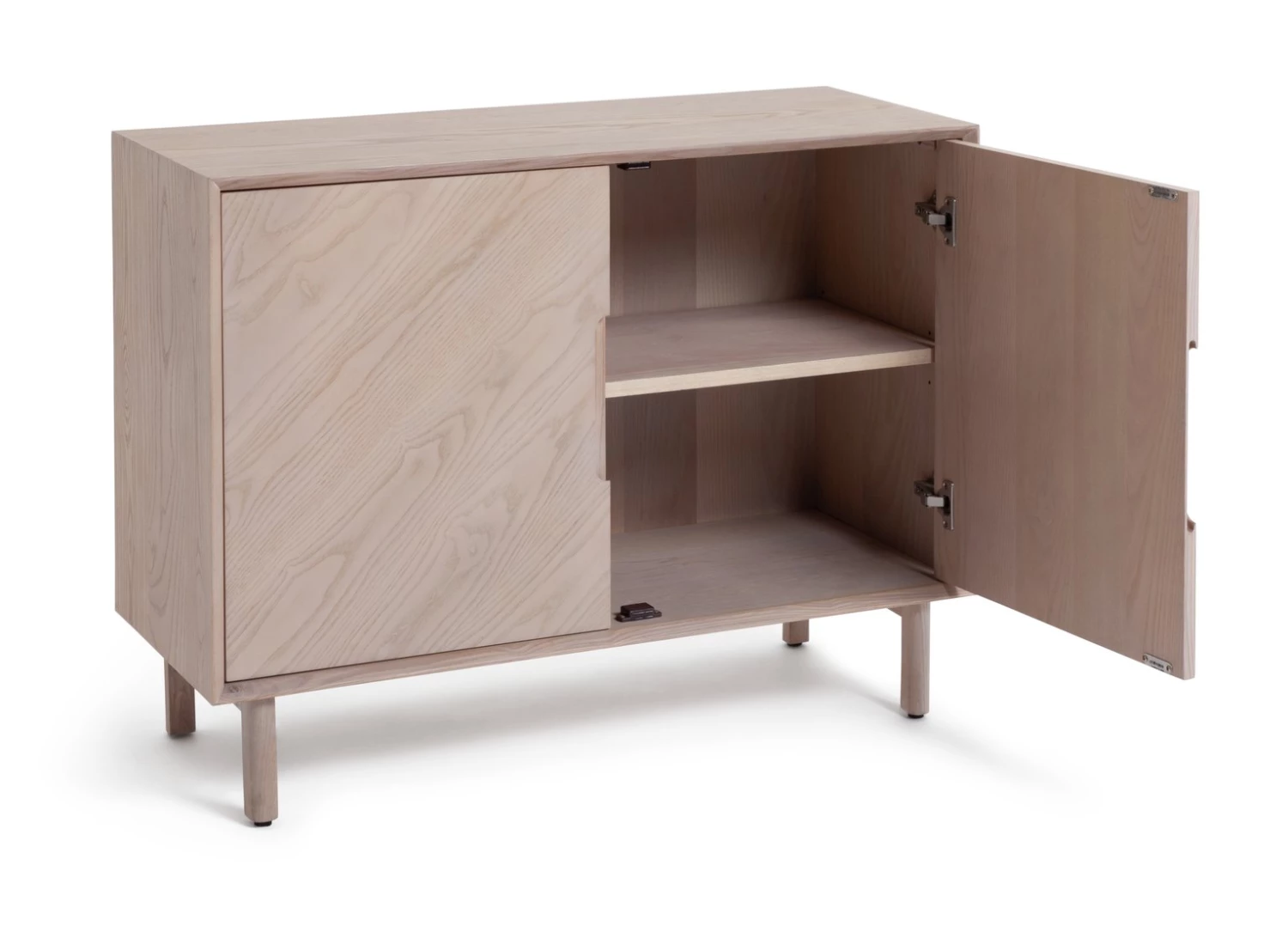 The Habitat Halden collection certainly doesn't lack character. This Scandi-inspired sideboard comes in a charming ash-veneer finish. Its cut-out handles, and slender legs give the sideboard a stylish edge. With 2 doors and an adjustable shelf, this sideboard marries both style and functionality perfectly.