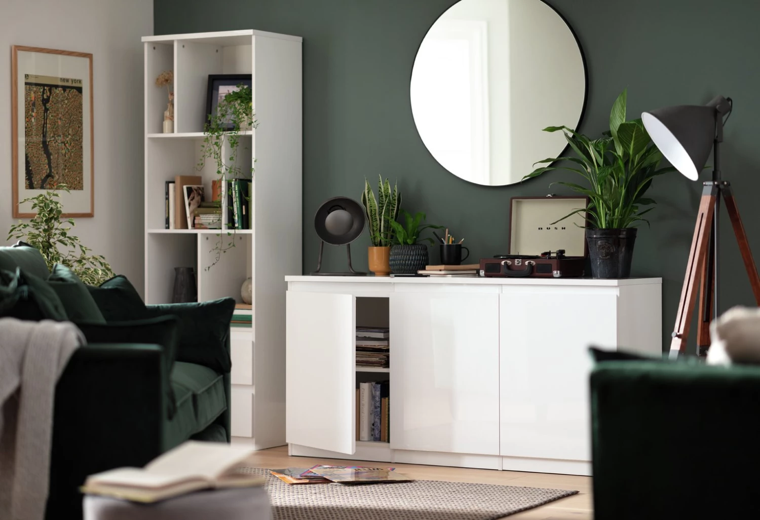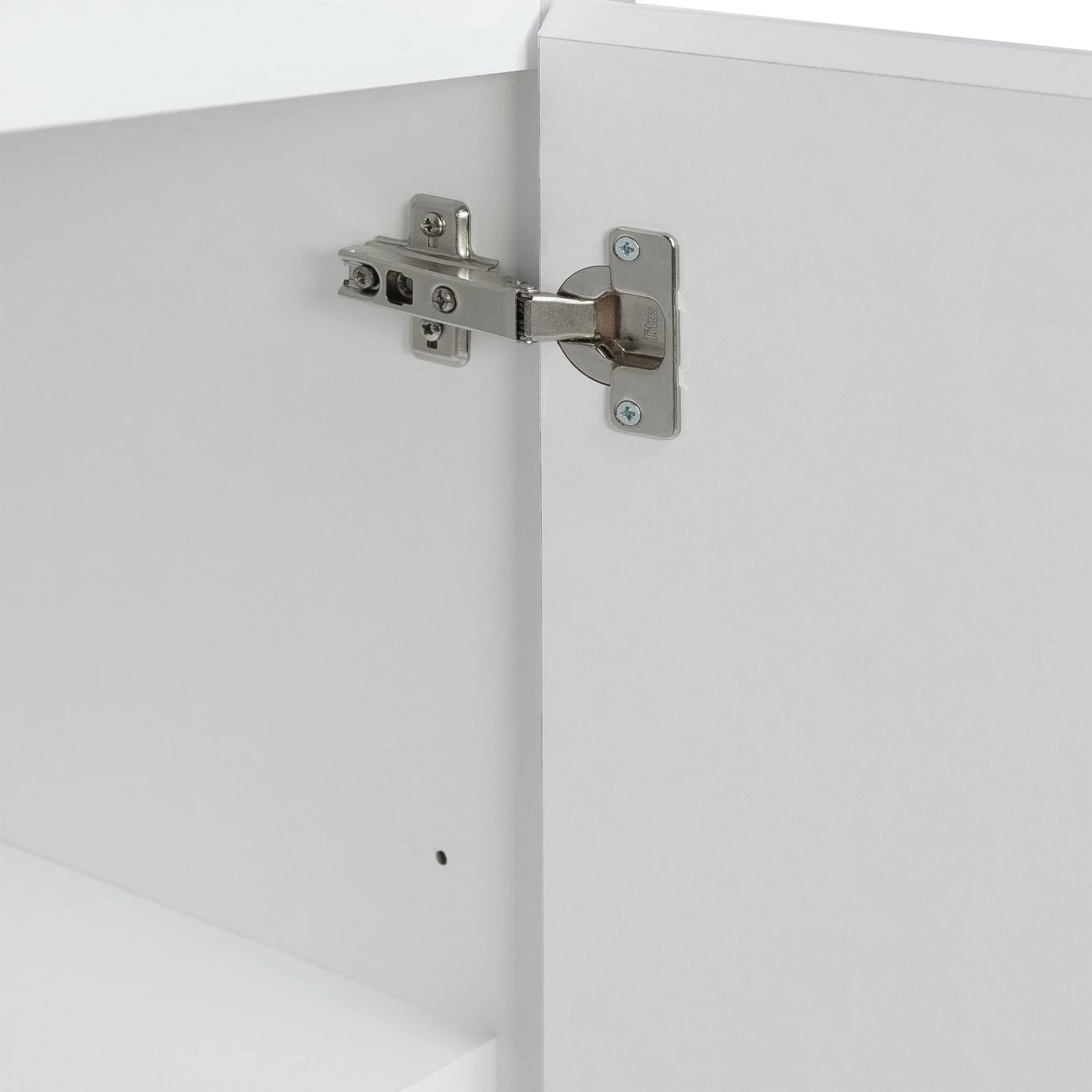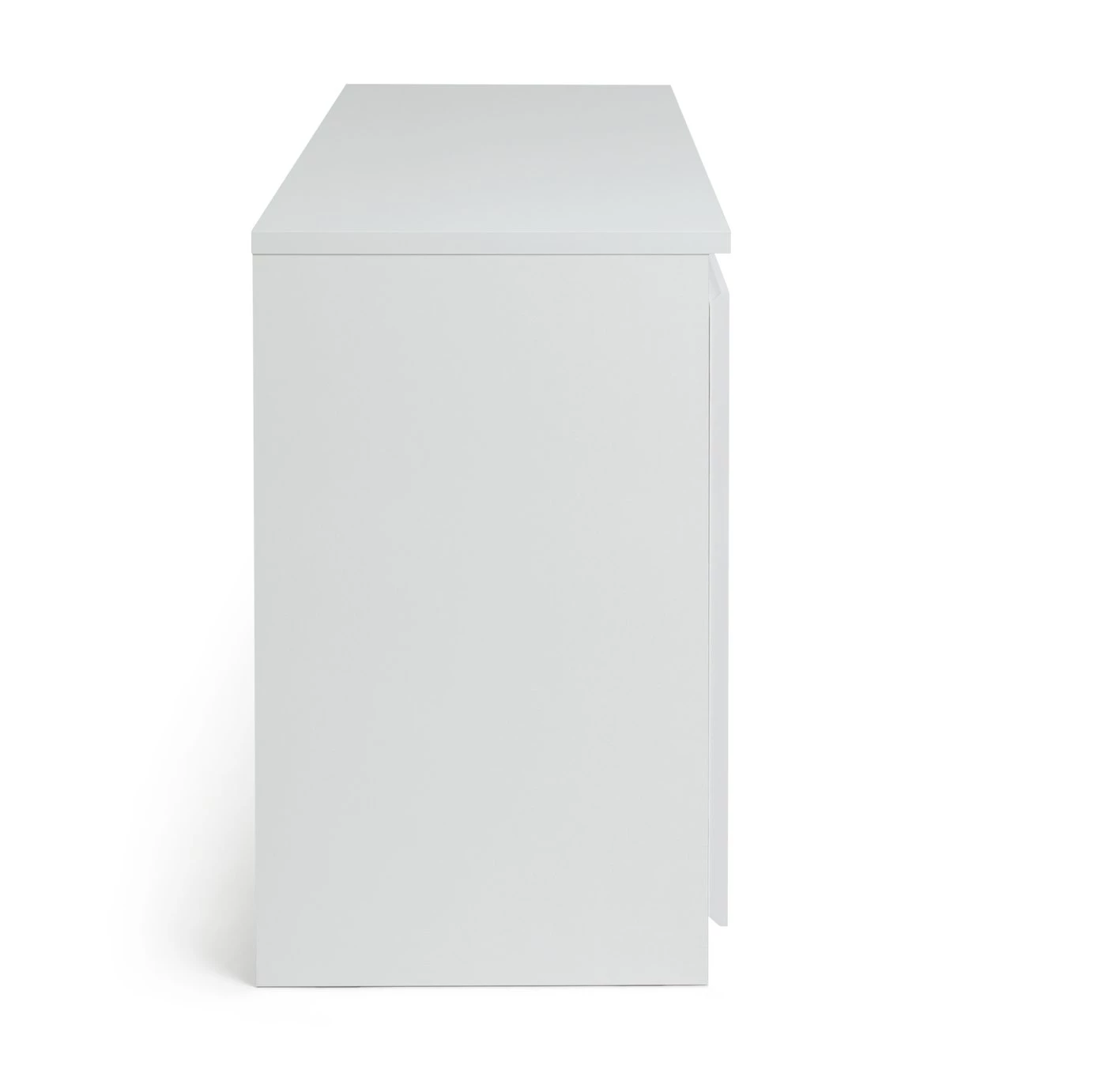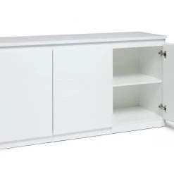 A simple, streamlined design. With a white gloss finish, this is a sideboard with universal appeal. Perfect in your dining room, living room or bedroom, it'll help keep any room blissfully clutter-free. 3 smooth handleless doors open to reveal roomy cupboard space with adjustable interior shelving. It's a great no-nonsense contemporary space-saver. Smart.