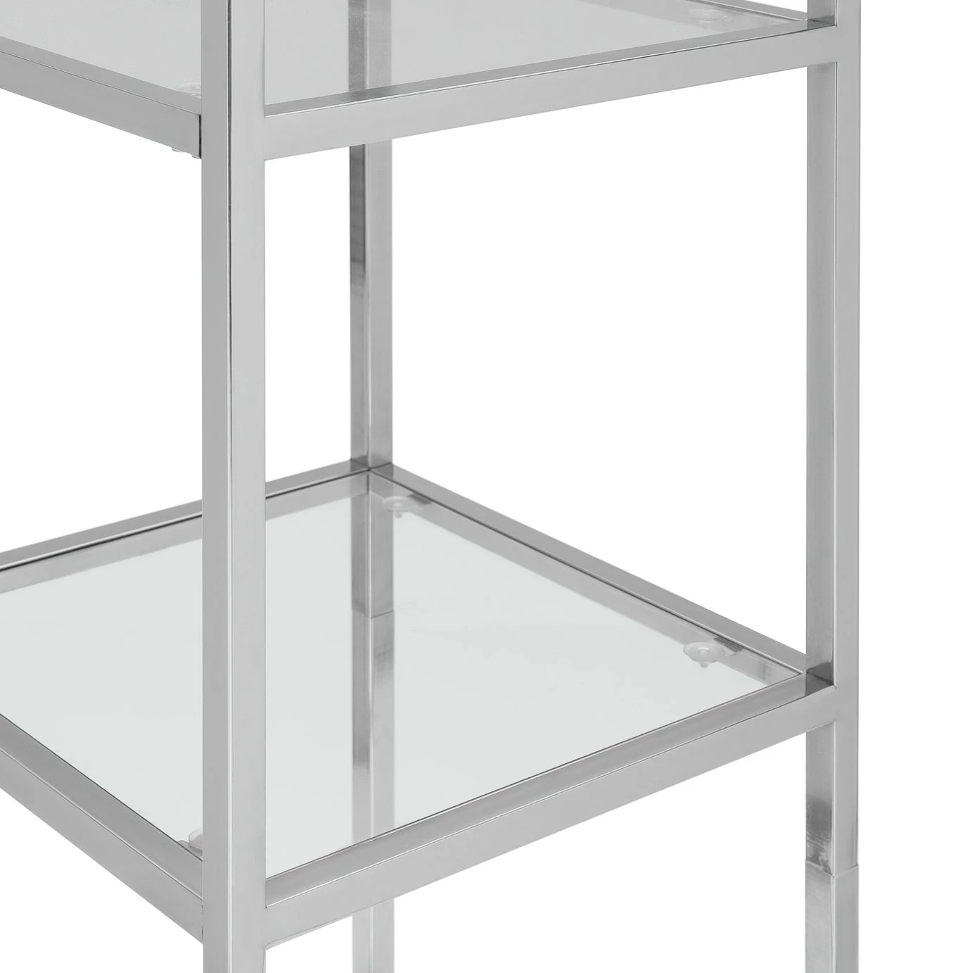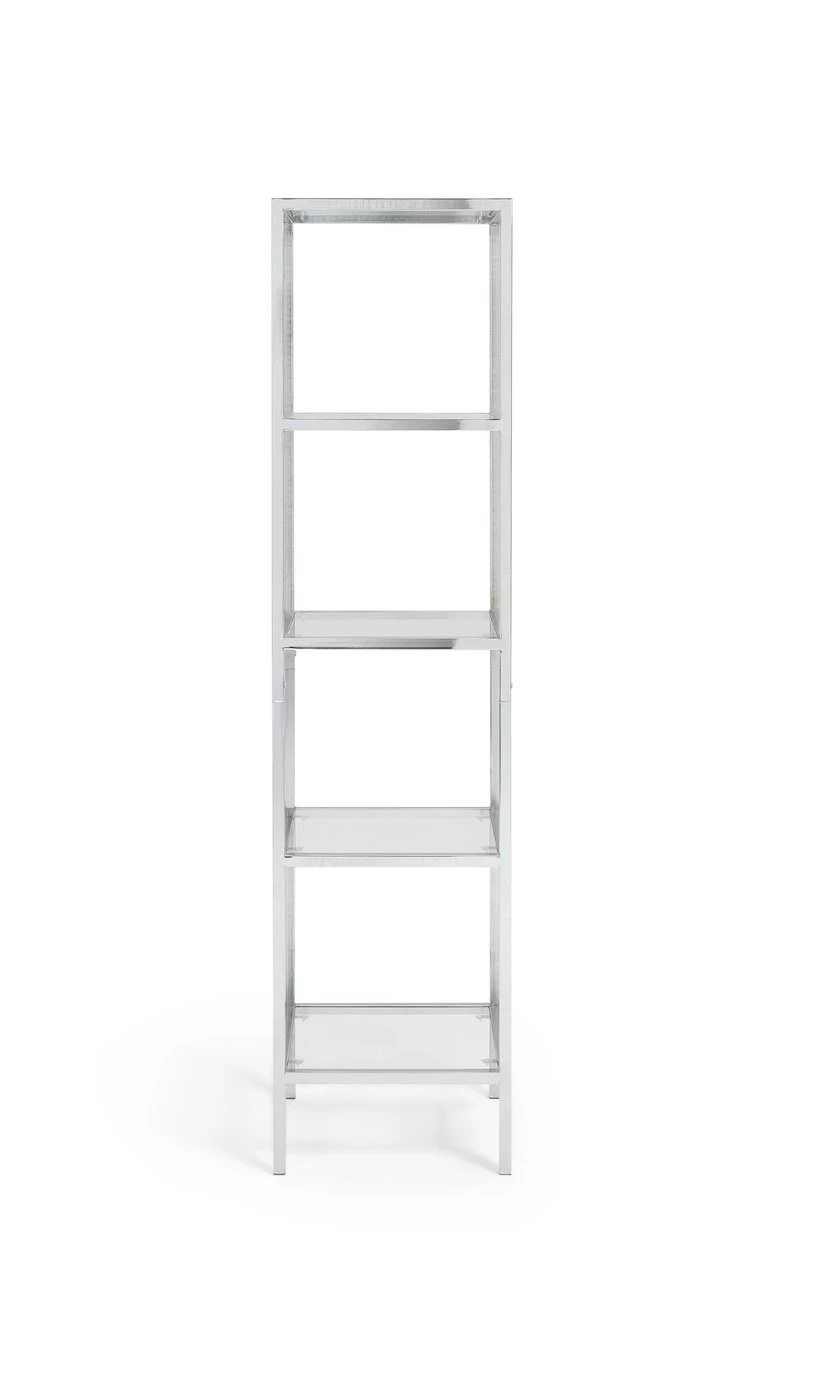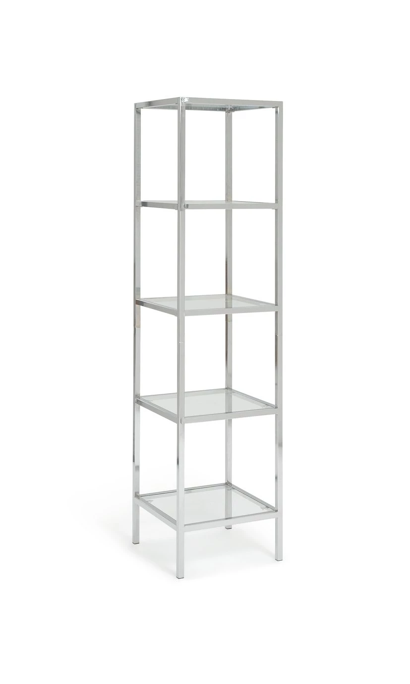 Artful office storage or a stylish display case. This slim, 30's inspired glass and chrome tower is a glamorous storage solution without taking up valuable floor space. High rise and ready to fill, it'll hold your laptop, files, pen pots in super chic style. Or fill it with picture frames, plants and your favourite object d'art. Want to add a little more drama? Light from behind and see your ornaments shine.