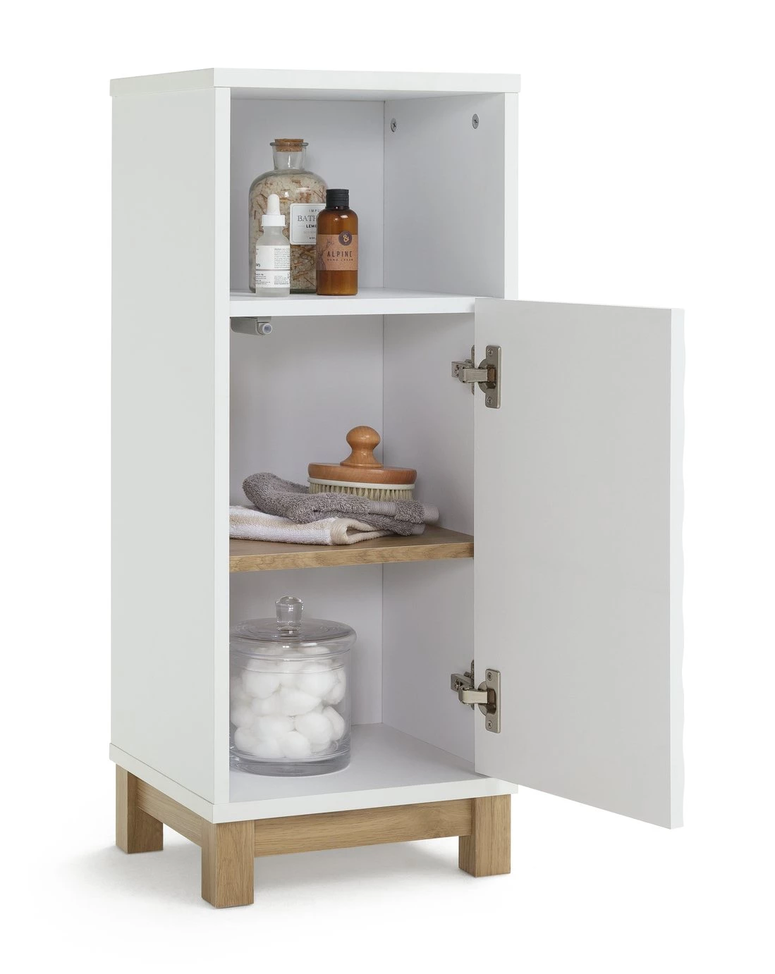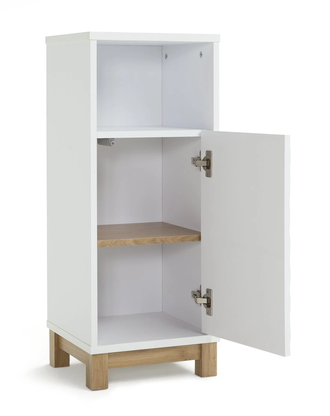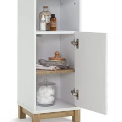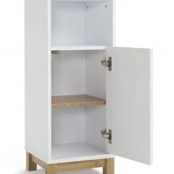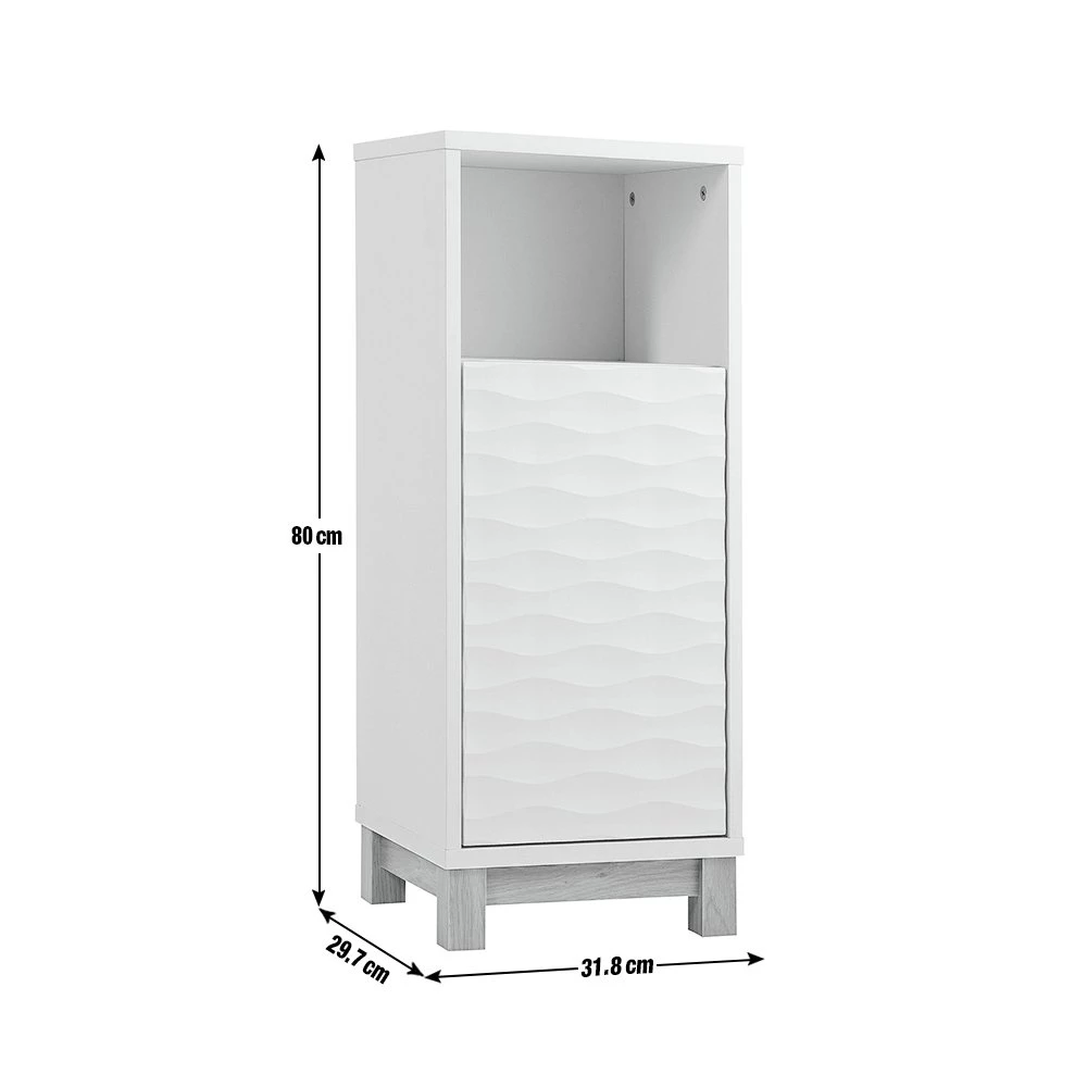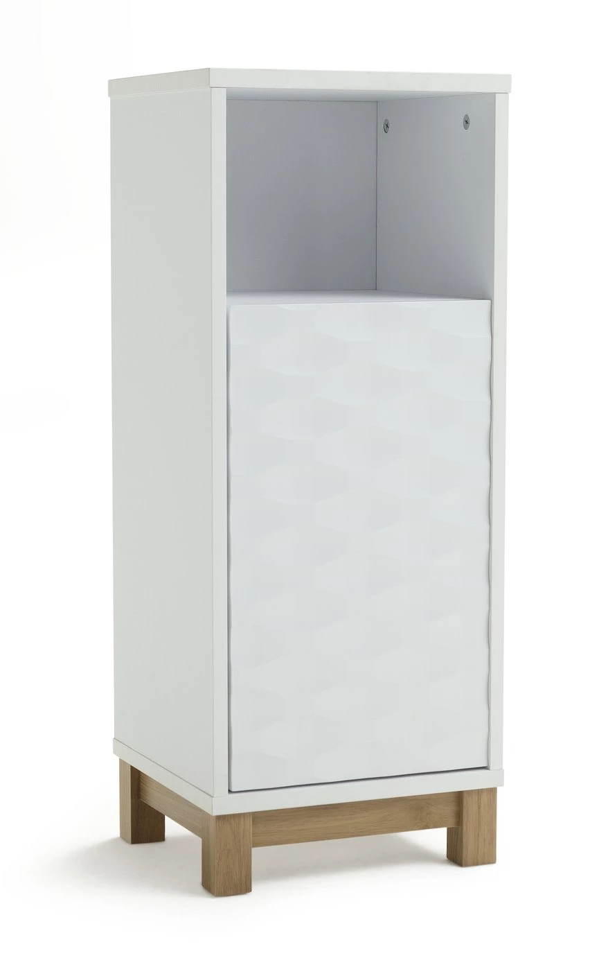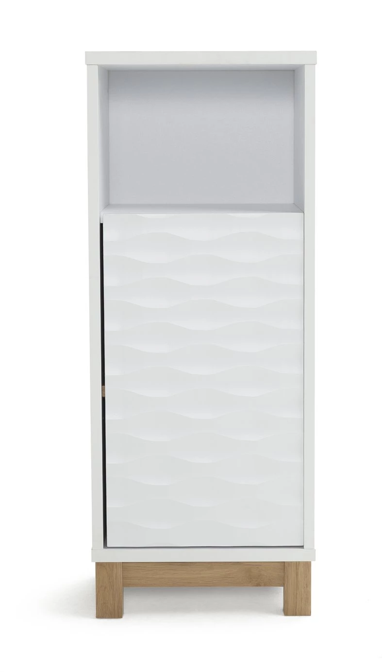 Soak up style. Bathrooms are wonderfully wet rooms so fill yours with designer waves. Our Zander single door cabinet with its textured ripple effect door is super stunning. Designed in bright white and oak with push to open doors it brings a refreshing and contemporary twist to bathrooms. With adjustable shelf it offers lots of space for folded towels, to bottles of varying heights and other bathroom accessories. Zander's looks will make a splash. We say excellent choice.
