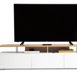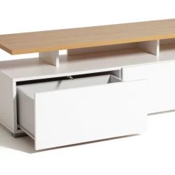 This tv unit takes the award for best-in-class. Sleek and modern with a wooden 'floating' shelf and a light concrete effect finish it's bang on trend. With plenty of clutter-busting space, fill the 3 deep drawers with gaming consoles and media player – all on easy glide runners for smooth opening and closing. Pile in DVDs, games, spare cables and remotes and slide the drawer shut. Settle down to your clean and tidy room, choose a film and why not order a takeaway.