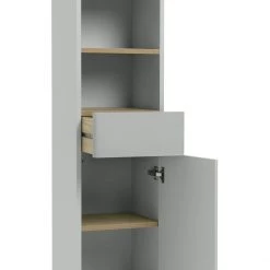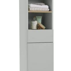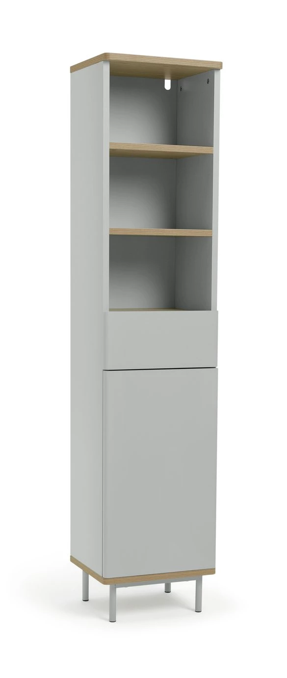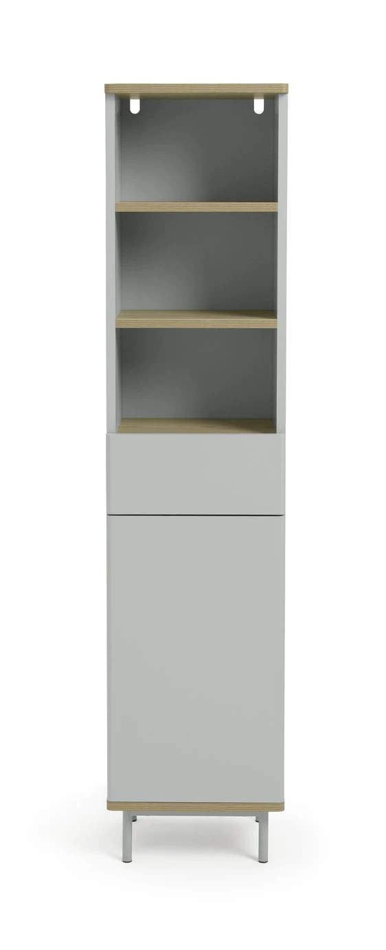 As fresh as a daisy. The Habitat Freja collection will give your bathroom the freshest of makeovers. With a smart matt finish, this tallboy will add a splash of grey to your space. Freja's curved edges soften the design and create a sense of calm. Its soft-close doors also help to create a tranquil bathroom. The open shelving is ideal for displaying towels and holding your family's toothbrush collection. The cupboard hides away sprays you'd rather not have on show. There's even a drawer for medication. A little powder room pizazz.