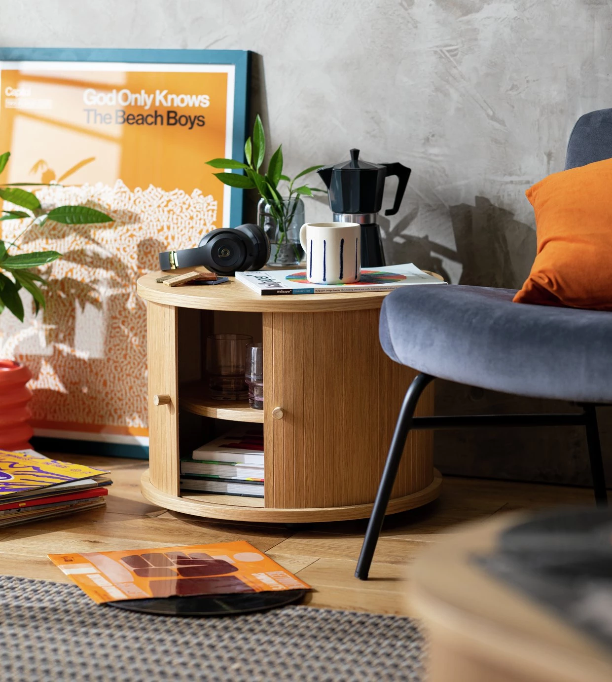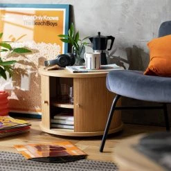 Here's a cheeky suggestion. With its adjustable shelf and easy access door, this circular sideboard makes for an eye-catching drinks cabinet. With plenty of surface space for some impressive 'mixology'. The limited-edition Tambor furniture range has been designed exclusively for Habitat by emerging designer Alba Elezi in partnership with Living Etc.