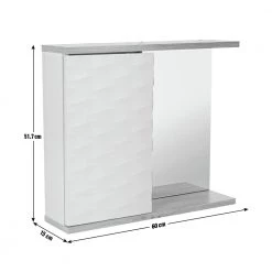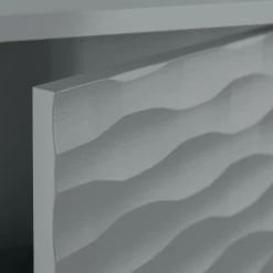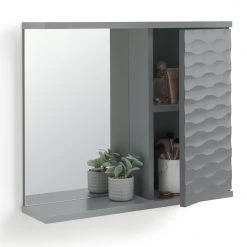 Designer waves for your bathroom. With its ripple-effect texture, this is one good looking bathroom cabinet. It'll add a bright dash of design to your space while hiding clutter. Zander has an edge-to-edge mirror and push-to-open cabinet. Inside, the adjustable shelf means you can store bottles and cosmetics of varying sizes. How handy.
