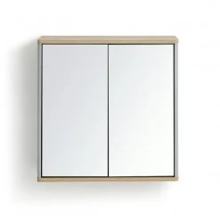Fresh, fabulous, Freja. With a smart matt grey finish and light wood detailing, this 2 door mirrored cabinet is all about the clean, contemporary look. A smart option for tucking toiletries, cosmetics and essentials neatly out of sight, and creating a sense of calm. And the adjustable internal shelf means you can tailor things around you. Sweet bathroom bliss.