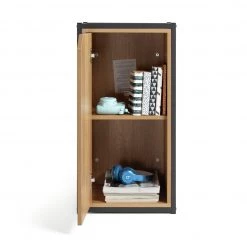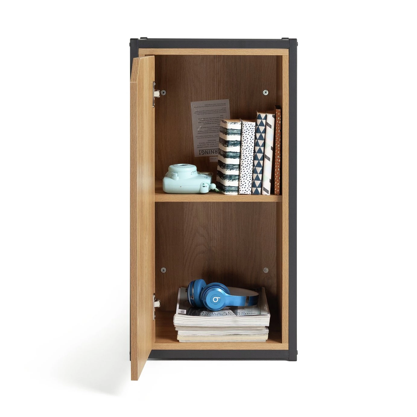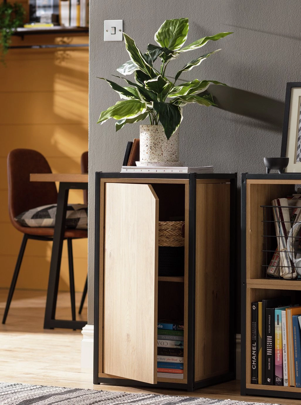 Distinctively industrial. Nail that loft apartment look with this ultra-modern storage and display unit. The Habitat Loft Living collection is fashioned from powder coated steel and warm oak-effect wood. This versatile little unit would be at home in the lounge, bedroom, office wherever you need a little extra storage space. It features clean, open lines and a minimalist box-shape. The corner cut-out handle adds intrigue to this industrial beauty. Cool urban style.