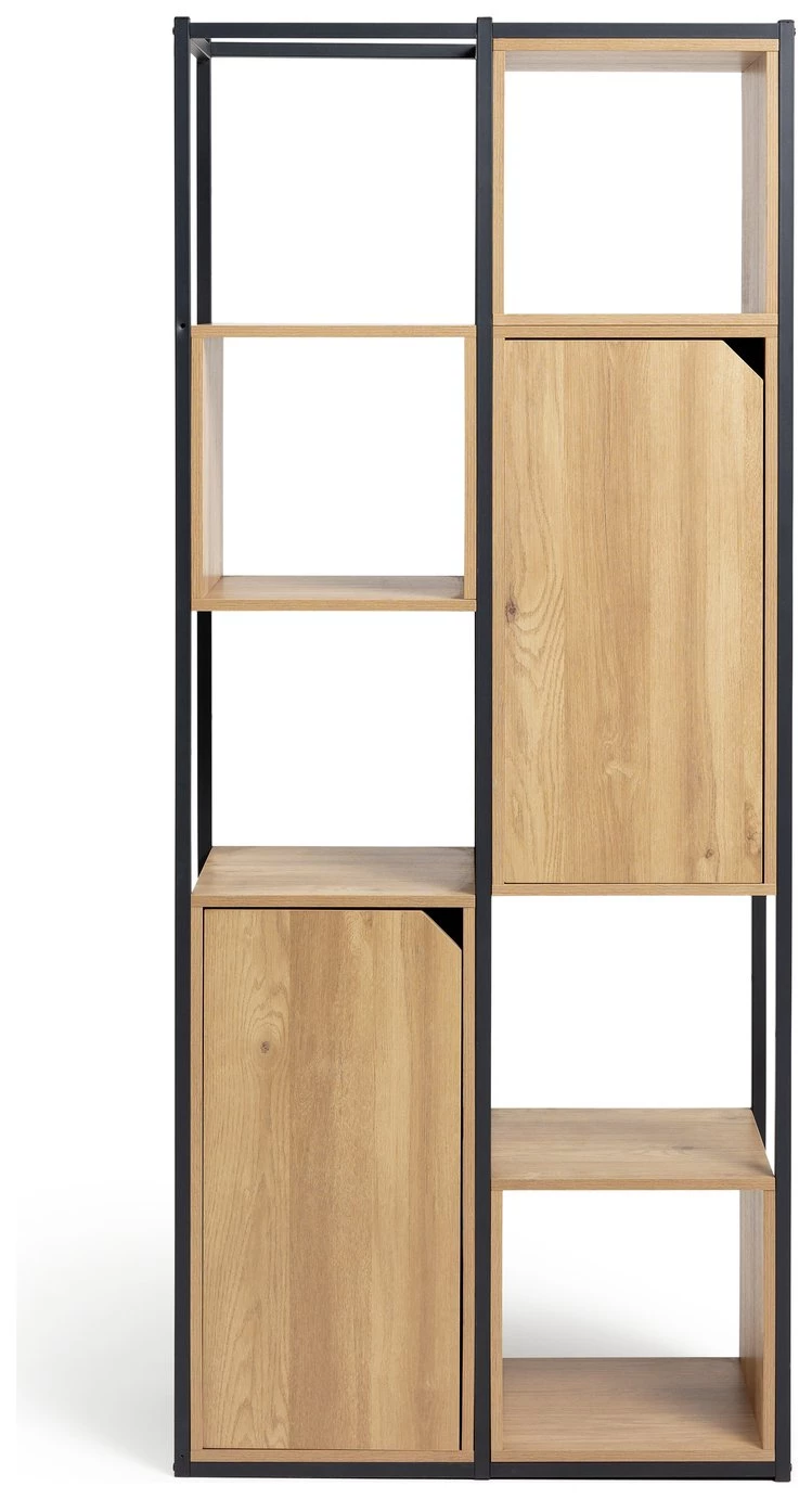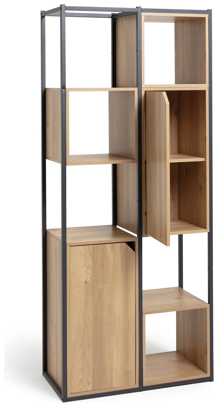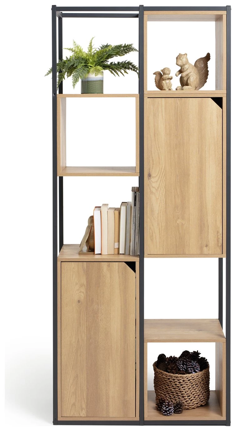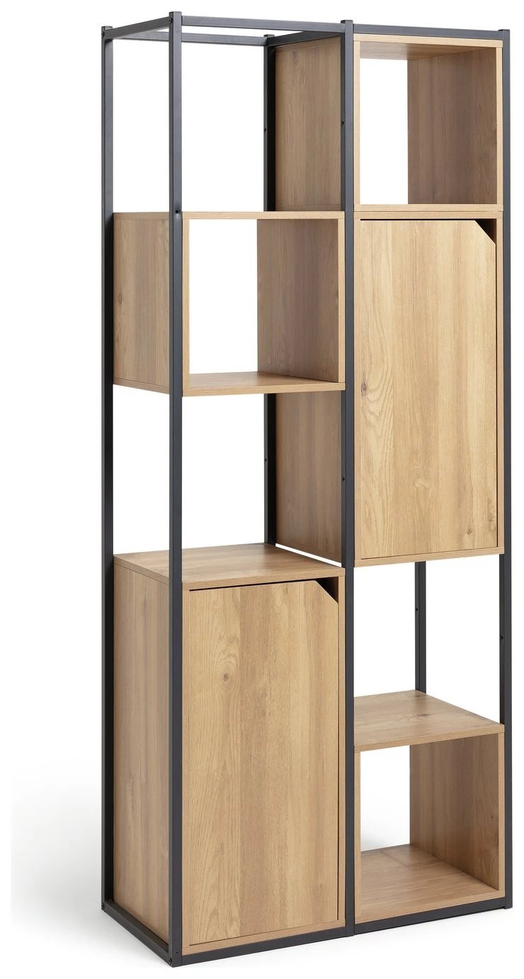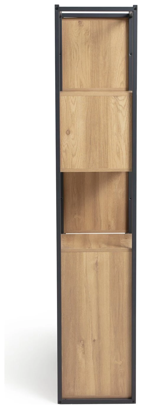 Distinctively industrial. Nail that loft apartment look with this ultra-modern storage and display unit. The Habitat Loft Living collection is fashioned from powder coated steel and warm oak-effect wood. This versatile unit would be at home in the lounge, office, bedroom wherever you need a little extra storage space. It features clean, open lines and a minimalist box-shape. The mixture of open and closed compartments offers a bit of visual variety. The corner cut-out handles add intrigue to this industrial beauty. Cool urban style.