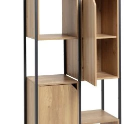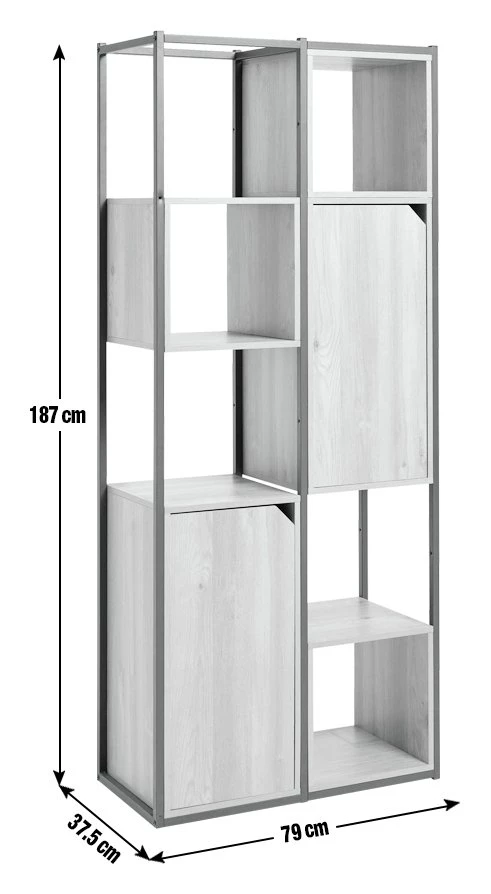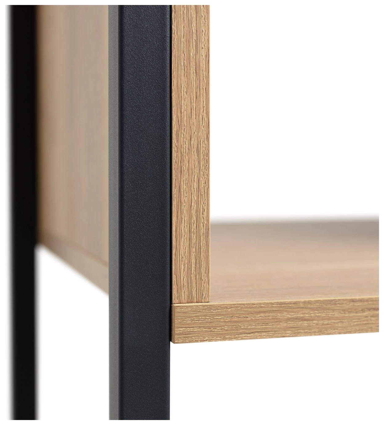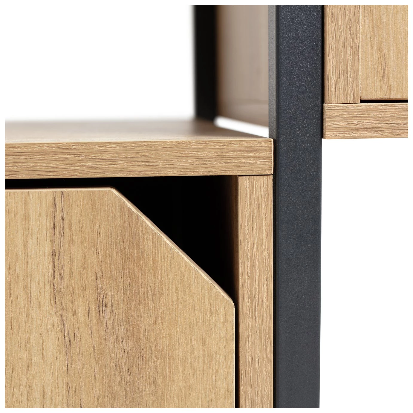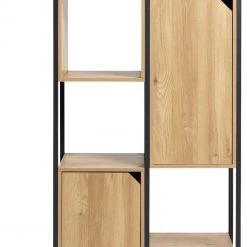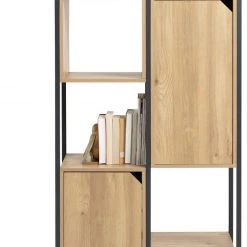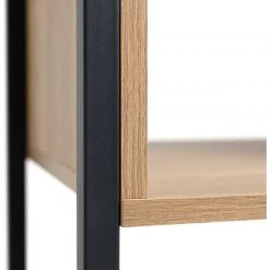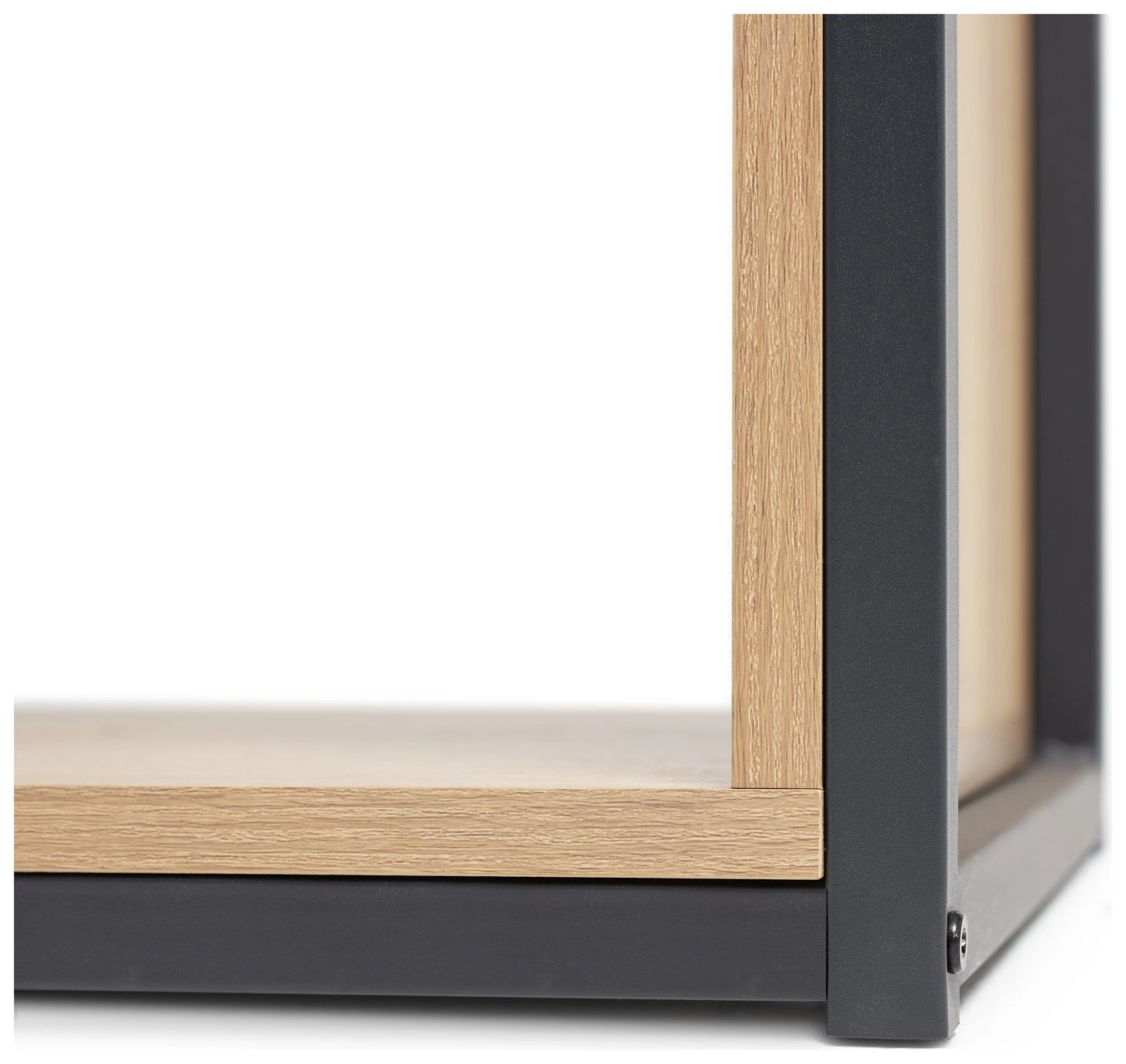 Distinctively industrial. Nail that loft apartment look with this ultra-modern storage and display unit. The Habitat Loft Living collection is fashioned from powder coated steel and warm oak-effect wood. This versatile unit would be at home in the lounge, office, bedroom wherever you need a little extra storage space. It features clean, open lines and a minimalist box-shape. The mixture of open and closed compartments offers a bit of visual variety. The corner cut-out handles add intrigue to this industrial beauty. Cool urban style.