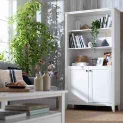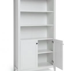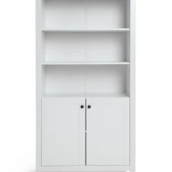 Shaker style storage. The Minato bookcase features crisp, clean lines and a timeless design. With 3 shelves and cupboard storage below, there's plenty of room to house all your books, games or china and glasses. Crafted from sturdy Pine and MDF in a fresh white finish, this bookcase complements most styles of decor. Country or contemporary. Clutter-busting storage at its best.