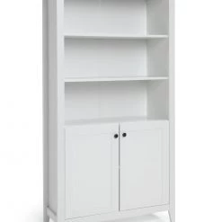 Shaker style storage. The Minato bookcase features crisp, clean lines and a timeless design. With 3 shelves and cupboard storage below, there's plenty of room to house all your books, games or china and glasses. Crafted from sturdy Pine and MDF in a fresh white finish, this bookcase complements most styles of decor. Country or contemporary. Clutter-busting storage at its best.