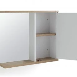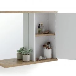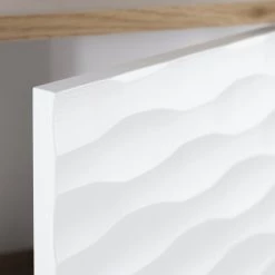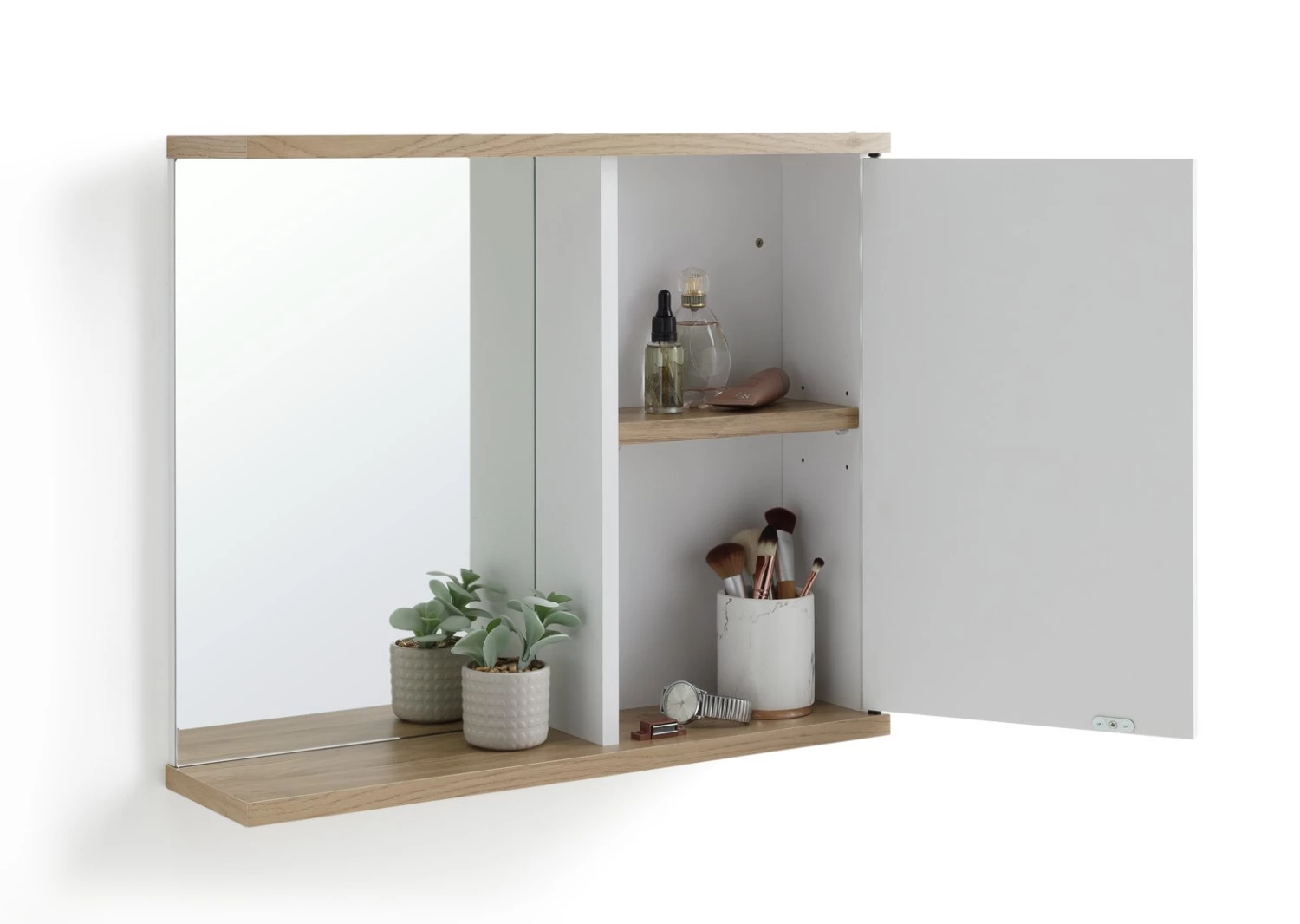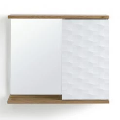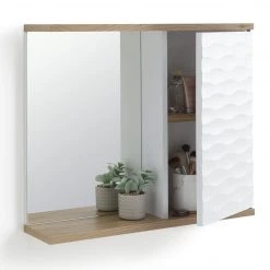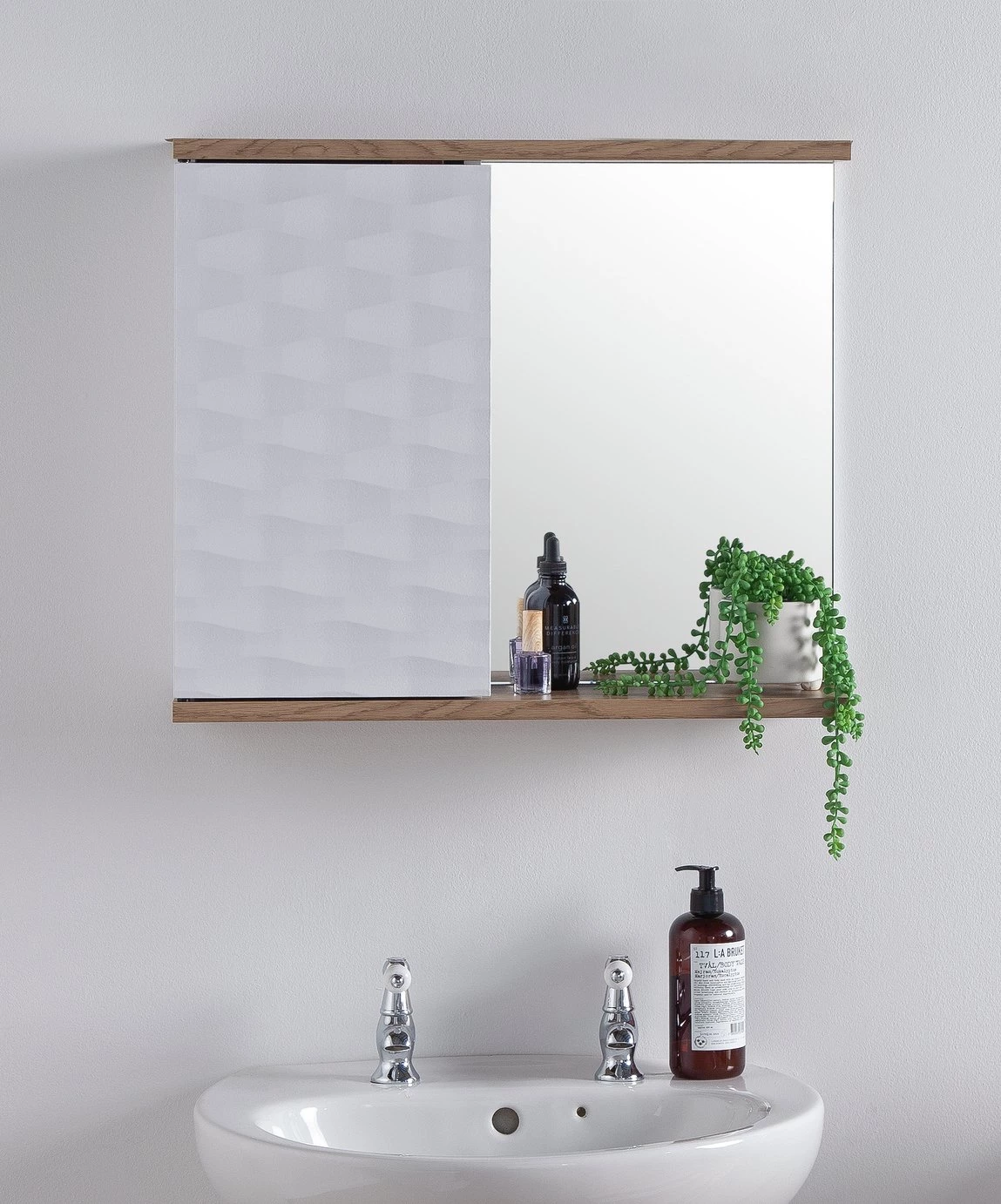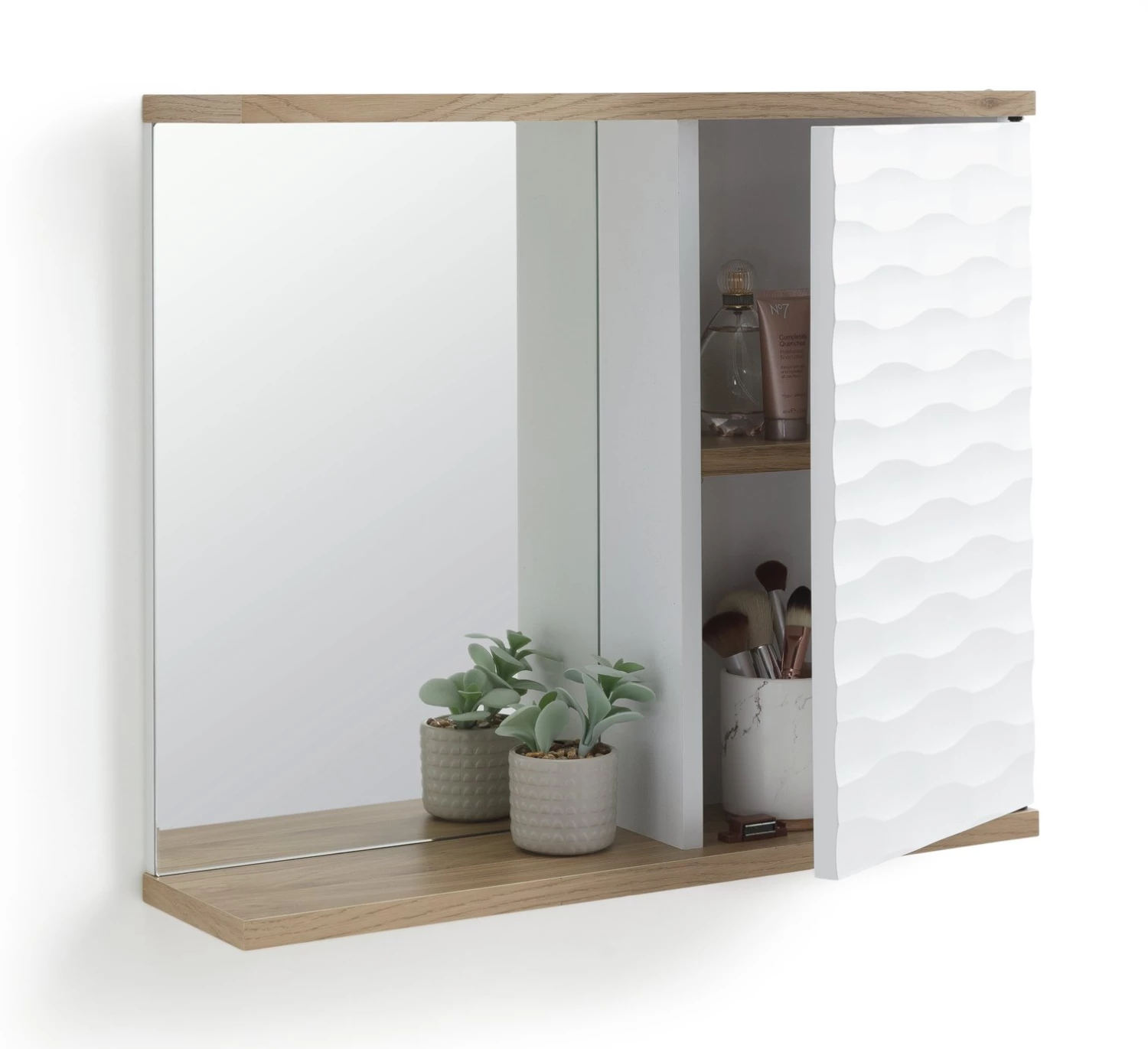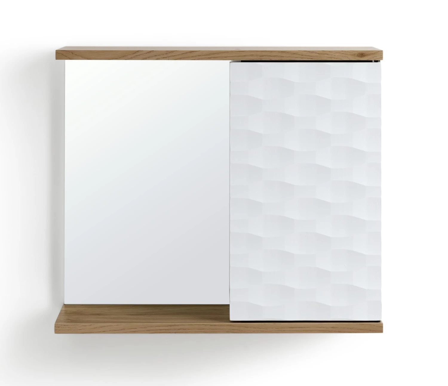 Designer waves for your bathroom. With its ripple-effect texture, this is one good looking bathroom cabinet. It'll add a bright dash of design to your space while hiding clutter. Zander has an edge-to-edge mirror and push-to-open cabinet. Inside, the adjustable shelf means you can store bottles and cosmetics of varying sizes. How handy.