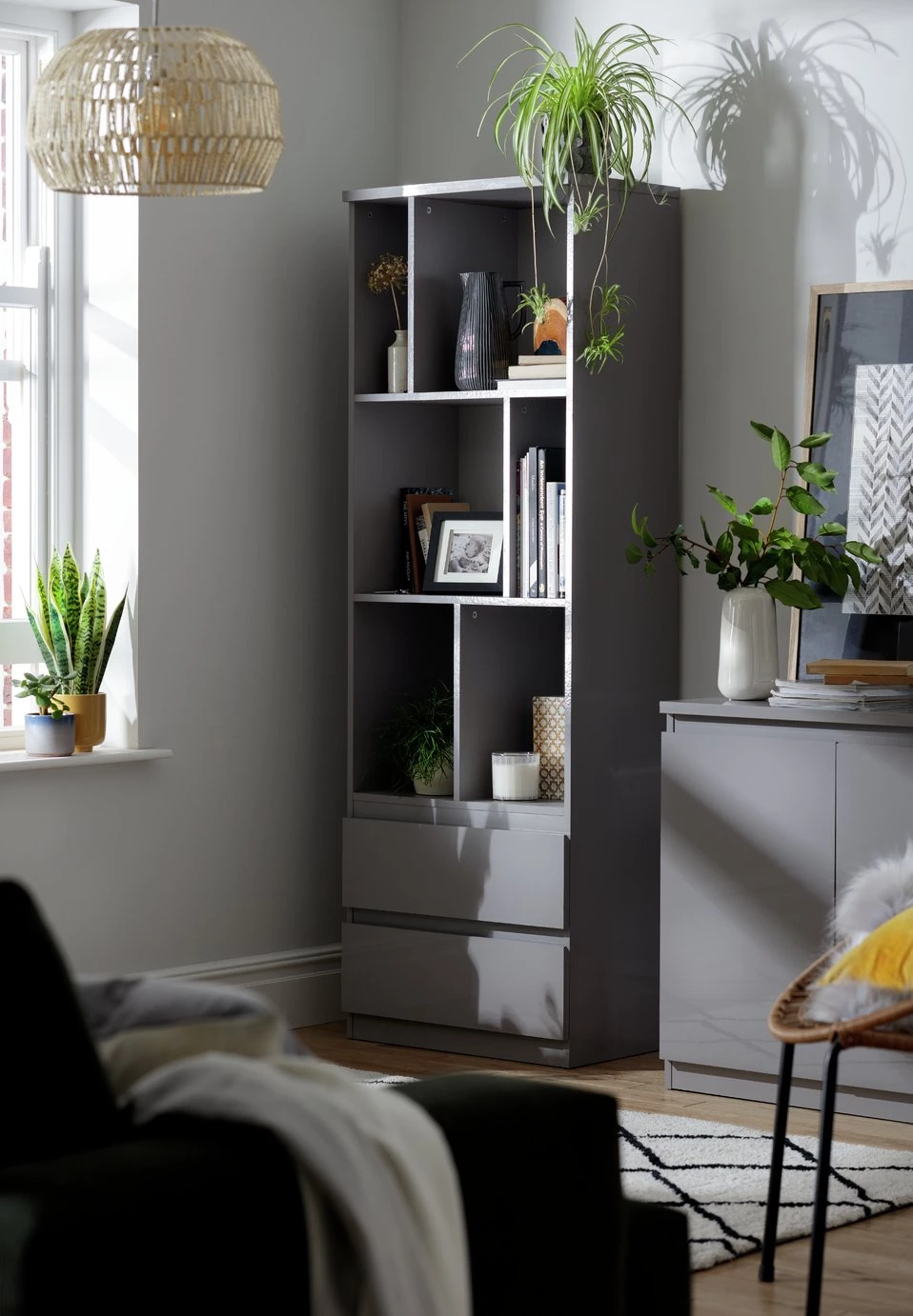 A simple, streamlined design. With a grey gloss finish, this is a sideboard with universal appeal. Perfect in your dining room, living room or bedroom, it'll help keep any room blissfully clutter-free. 3 smooth handleless doors open to reveal roomy cupboard space with adjustable interior shelving. It's a great no-nonsense contemporary space-saver. Smart.