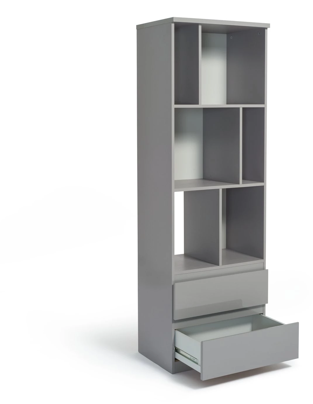 - Shelves range from 14.5cm wide (narrowest) to40 cm wide (widest)Recommended maximum load per shelf: 9kg.