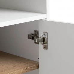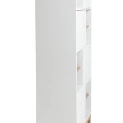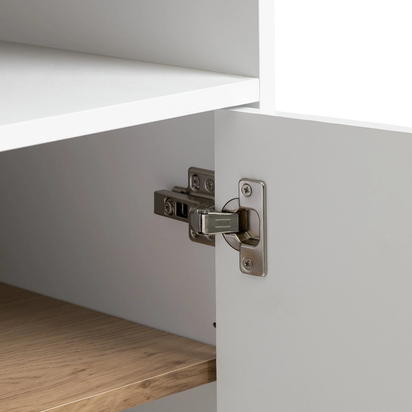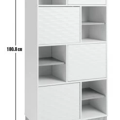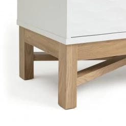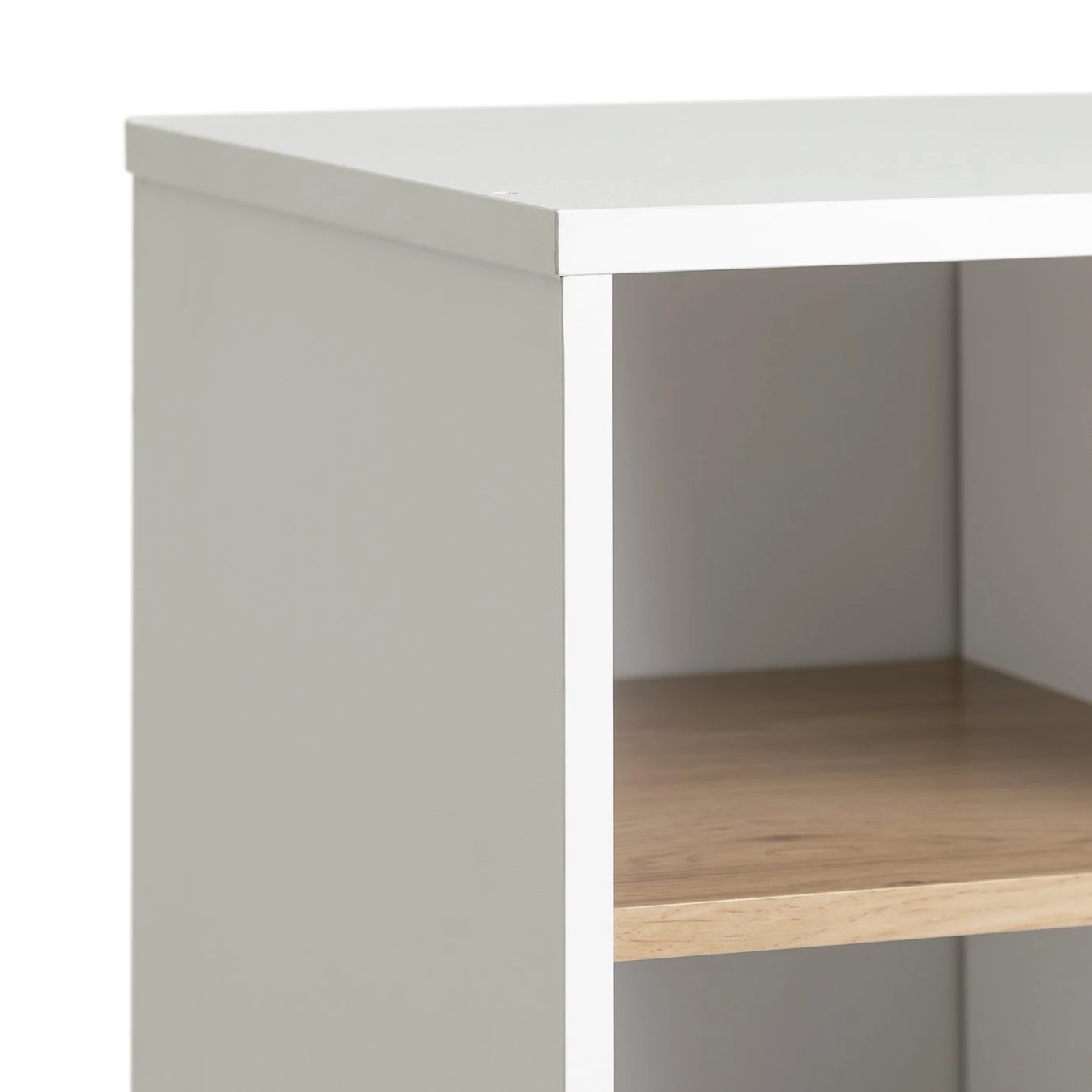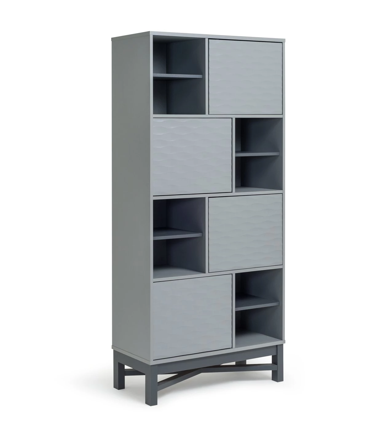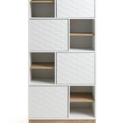 Contemporary design at its best, the Zander 4-tier shelving unit is a stylish and practical addition to any room. Storing everything from books to records with ease, this wide unit has a mixture of open shelves and closed cupboards. The ripple textured white finish, oak detailing and cross trestle-style legs give off that soft Scandi look we can't get enough of.